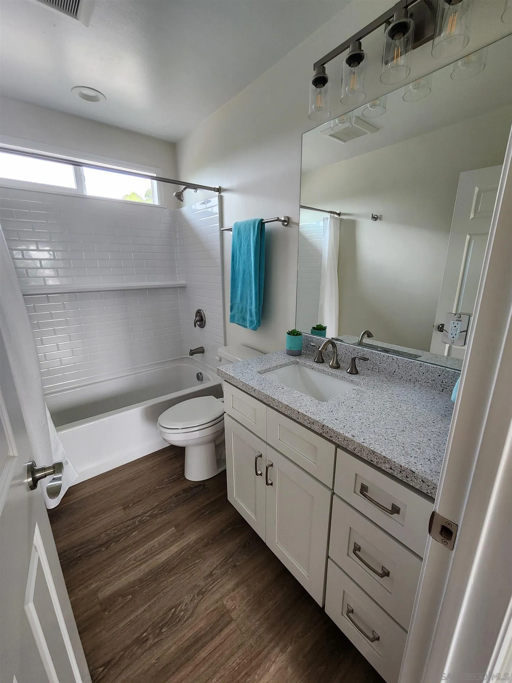 The property consists of 2 houses and a Junior ADU: The front house, a 2-story 3 br/2.5 bath and the Junior ADU (1 br/1ba) are brand new construction. The back house, a 1-story 2 br/1 bath was built in 1960+/- and is fully renovated. Within walking distance to the Sprinter. Close to Vista Village where you can find Cinepolis cinemas, dining and entertainment.