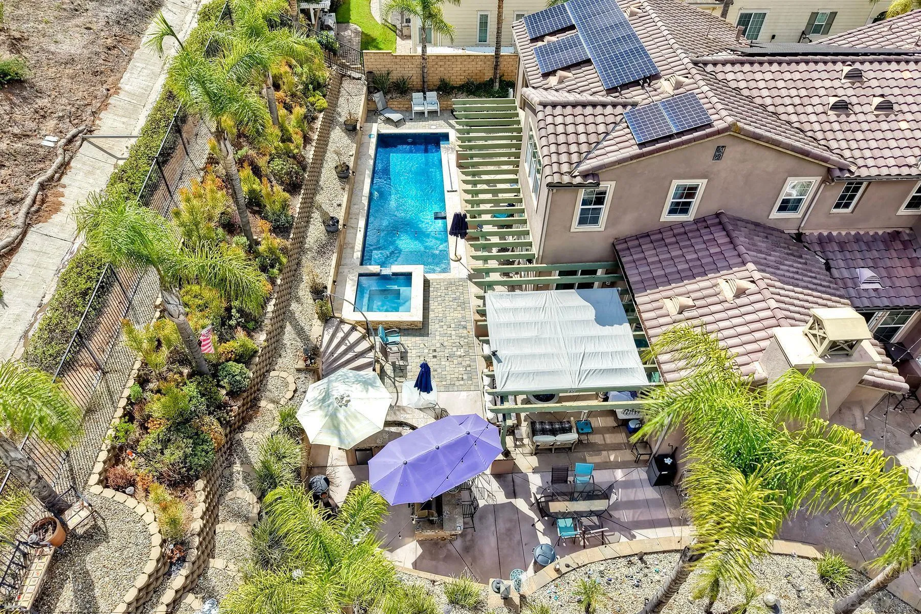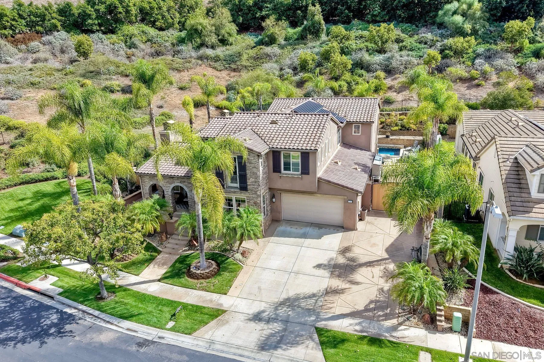 Welcome to your own entertainers paradise in the gated community of Rancho Vistamonte. This property exudes quality that you will feel immediately when you walk in the door. This spacious 4-bedroom, 3.5-bath home boasts nearly 4,000 sq ft of gorgeous living space featuring a main-level Bedroom as well as an additional BONUS (office) room on the same floor, HIGH ceilings, abundant natural light, SOLAR (owned) and brand new carpet (new carpet not in photos). The family room with fireplace seamlessly flows to the dining space and backyard. The second floor consists of 3 bedrooms, including the PRIMARY suite with additional sitting area, his & her closets. Throughout the home are graceful archways for added architectural charm. Plenty of room on the side of the house for RV, Boat, or other toys. The backyard is a private retreat designed to impress with a refreshing pool and spa. This is a great backyard for entertaining. Located within the San Pasqual Union School District, this move-in-ready home checks all the boxes for luxury, comfort, and function.