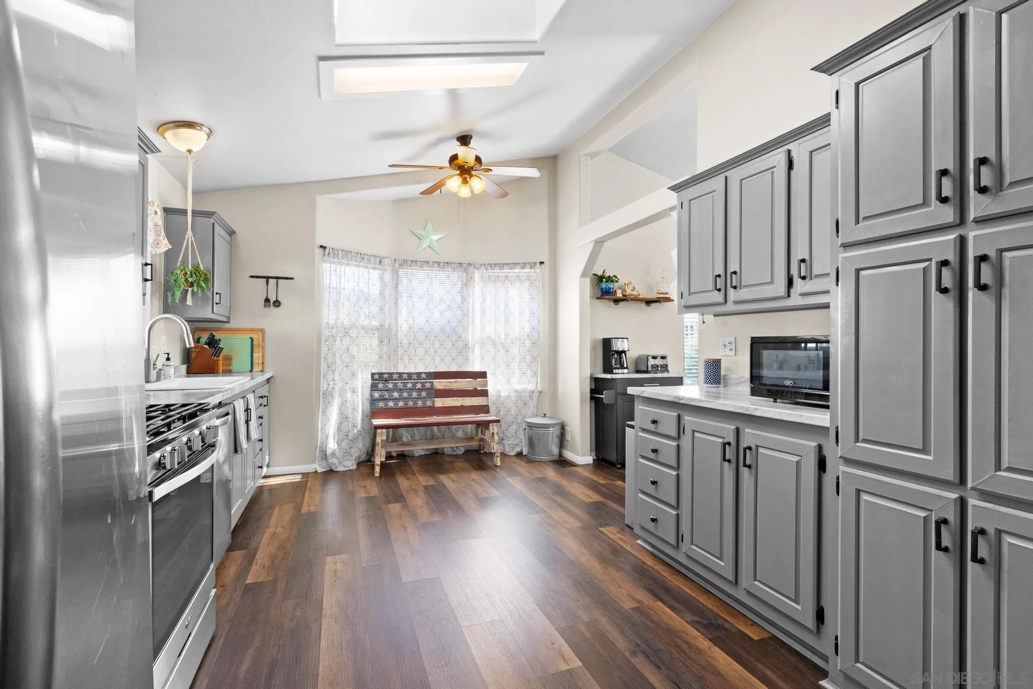 Welcome home to this beautifully maintained 3-bedroom, 2-bath, 1,360 sq. ft. manufactured home located in an all-ages park in the heart of Ramona! Step inside to find high ceilings and hardwood flooring that create a bright and open feel throughout. The spacious kitchen offers plenty of counter space and storage, perfect for anyone who loves to cook, and flows nicely into the formal dining area for easy entertaining. Enjoy the fresh exterior paint and woodwork updates, giving this home great curb appeal. Outside, you’ll find a fully fenced side and backyard, ideal for gatherings, pets, or relaxing outdoors. The large, covered carport, accessible from both ends, provides ample parking and can accommodate larger vehicles. Love where you live! This home sits near great restaurants, shops, schools, and outdoor trails, and is just a short drive to Ramona’s charming wineries. Enjoy the perfect balance of comfort, convenience, and the relaxed lifestyle of one of Ramona’s most desirable manufactured home communities.