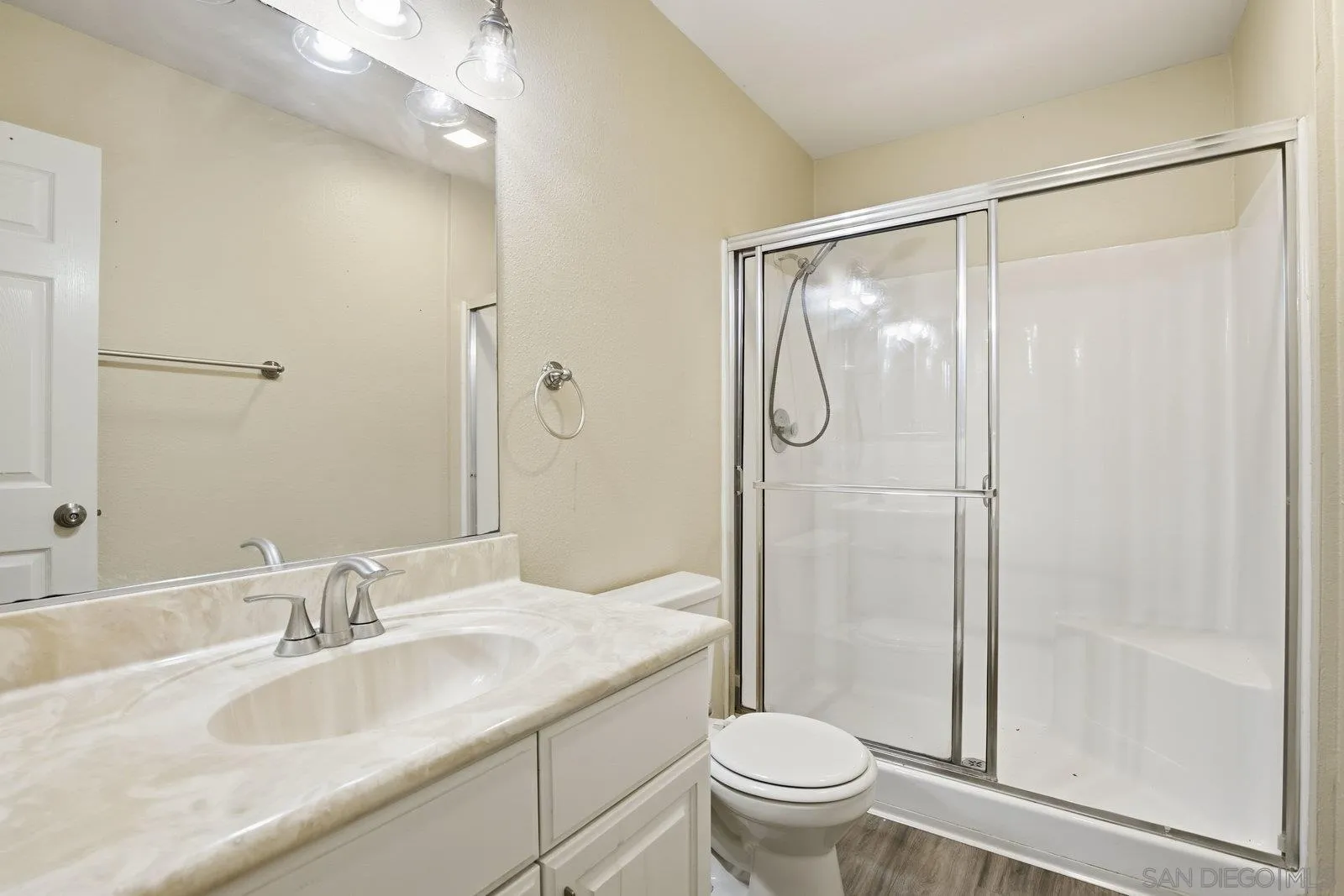 Value range $350,000-$375,000. Welcome to this light and open first-floor condo offering an easy, single-level layout with a comfortable flow between the kitchen, dining, and living areas. The entry opens to tile flooring, while the living room features wood-laminate flooring and plenty of natural light. The dining area and kitchen share an open configuration, and a sliding glass door from the dining area leads to a small private patio with a storage closet. The kitchen includes a refrigerator, dishwasher, electric stove, and microwave, with practical workspace for everyday cooking and dining. The hallway offers linen storage and a full-size laundry closet with side-by-side washer and dryer hookups for added convenience. This home features two bedrooms and two bathrooms, including a bright primary bedroom with mirrored closet doors and a private en-suite bath. The second bedroom also includes mirrored closets and good natural light, with the hall bath nearby for easy access. Additional highlights include two assigned parking spaces—one covered and one uncovered—and a community pool for residents to enjoy. Located within a quiet cul-de-sac close to shopping, dining, parks, and major commuter routes, this property offers both comfort and convenience in a well-situated community.
