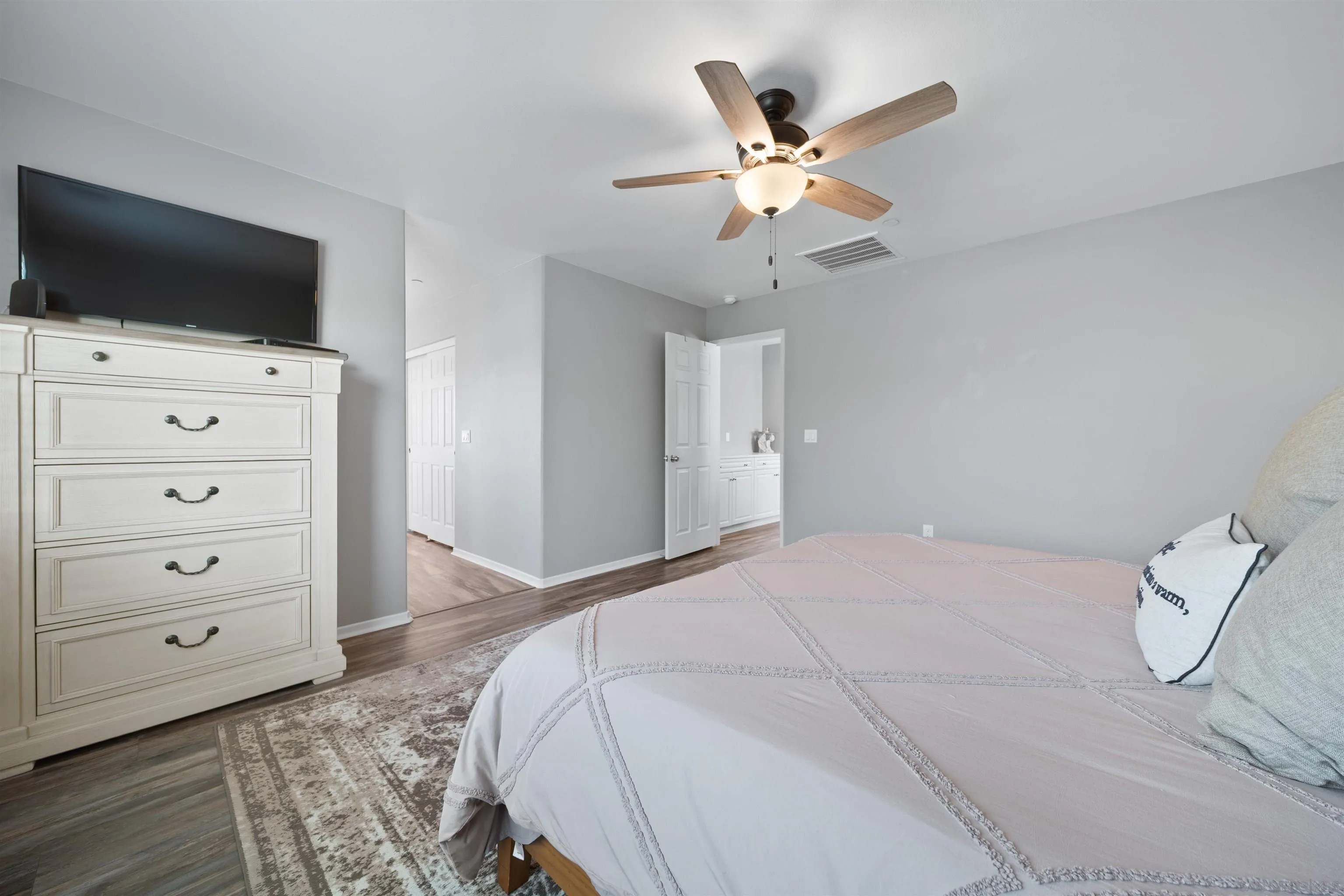 Welcome to this beautifully maintained 5-bedroom, 3-bath home offering 2,569 sq ft of thoughtfully designed living space. Built in 2019, this newer home combines modern comfort with stylish finishes throughout, including luxury vinyl plank flooring and a timeless tile roof. The flexible floor plan features one bedroom on the main level, ideal for guests, multigenerational living, or a home office. The spacious primary suite offers a relaxing retreat with an ensuite bath featuring a walk-in shower, soaking tub, and dual functionality for everyday comfort. The open-concept kitchen is designed for both daily living and entertaining, complete with granite countertops, a large center island, and gas stove. Outside, enjoy a beautifully landscaped yard, a welcoming front porch spacious enough for lounging, and a finished backyard with grass, gravel, and patio space ready for relaxing or gathering with friends and family. The side yard offers additional room to personalize and make your own. A wonderful blend of space, function, and modern design.