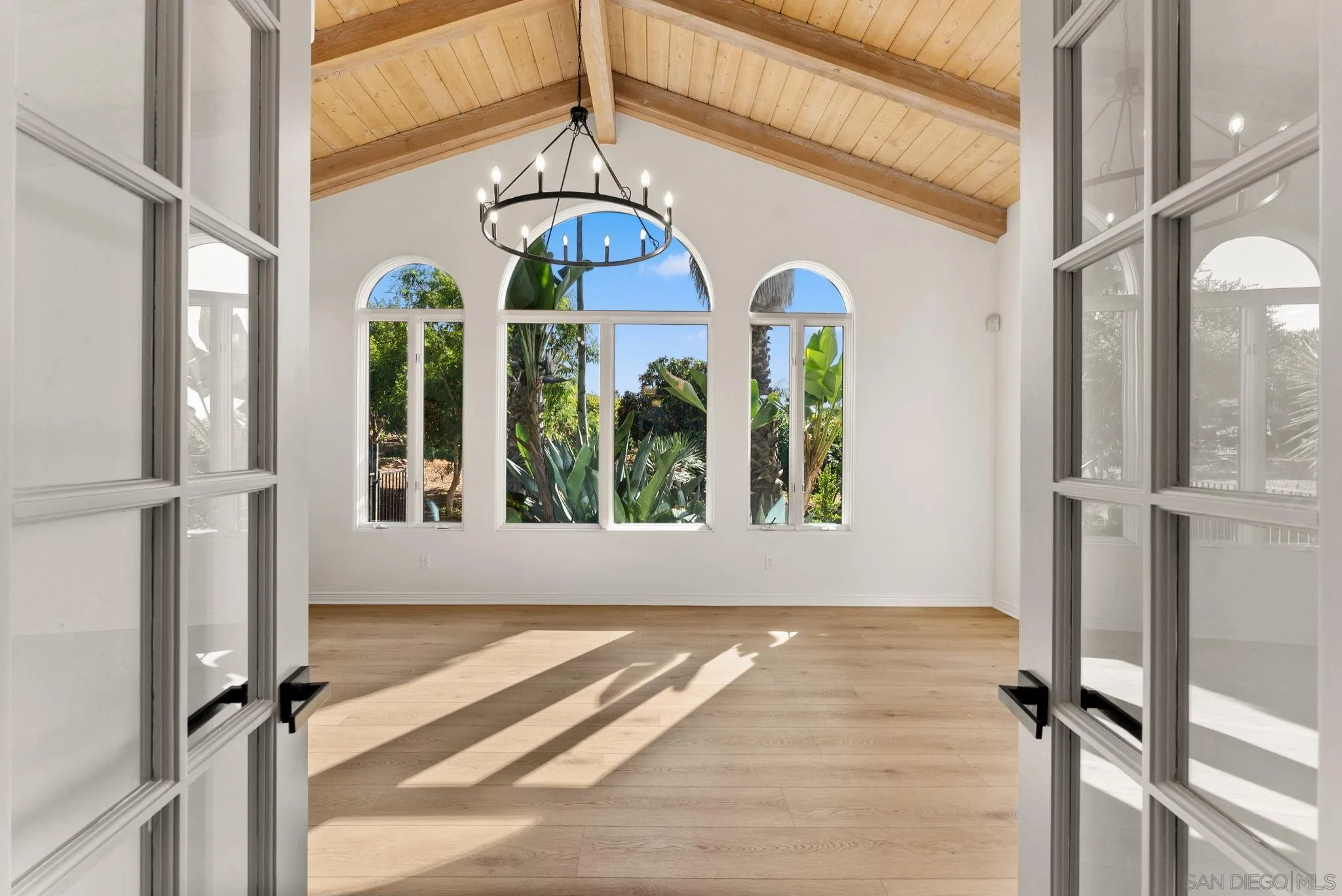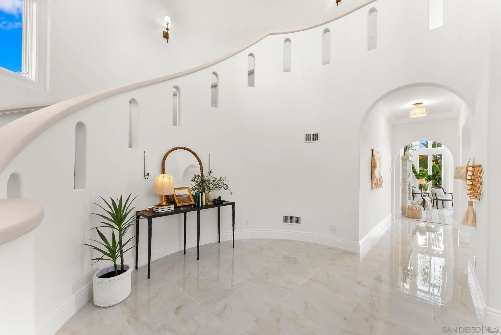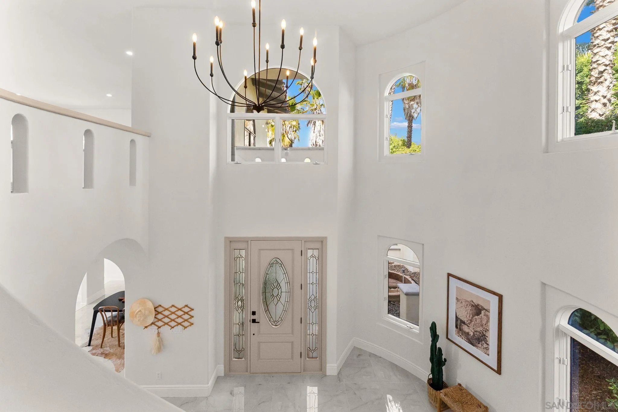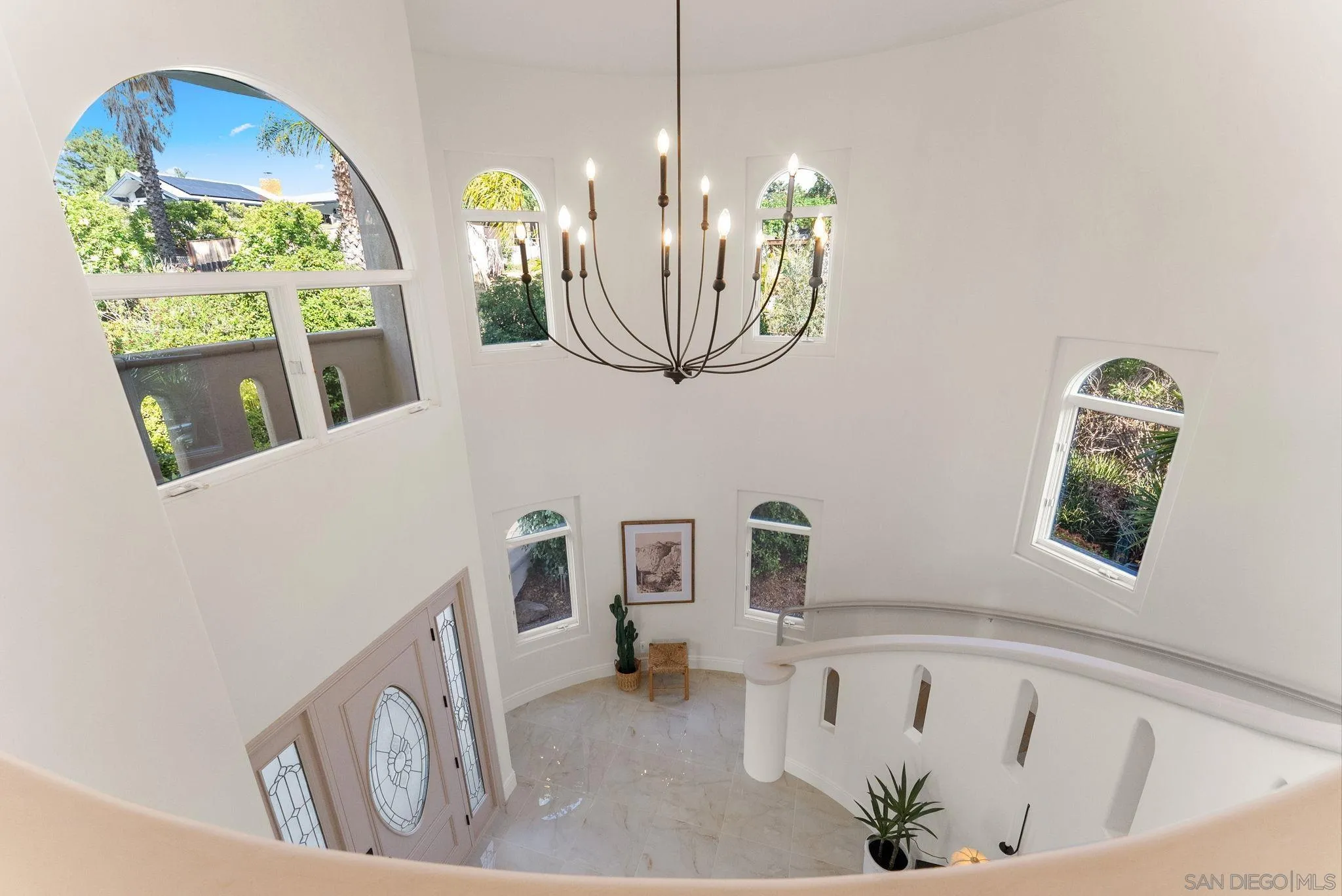 Welcome to this beautifully renovated two-story custom-built Mediterranean private oasis, where timeless architecture meets modern luxury. With distinct architectural details throughout each space, the thoughtfully designed floor plan offers over 3500 square feet boasting five bedrooms, three bathrooms, a large downstairs bonus room, and a spacious upstairs den—providing flexibility for work, relaxation, and gatherings. With over half an acre of land, the backyard has additional space for boats, RV’s or even a potential ADU. Nestled in a highly desirable neighborhood on a private culdesac, it showcases designer touches throughout, with bright natural light, soaring high ceilings, and a spacious open living area designed for both everyday comfort and elegant entertaining. The gourmet kitchen features premium appliances, custom inset cabinetry, and double ovens, seamlessly flowing into the main living areas anchored by a beautiful stone fireplace. The private primary retreat offers a peaceful escape, complete with a generous walk-in closet. Outdoor living is equally impressive, with multiple patios, three balconies, and captivating views that create the perfect backdrop for entertaining or unwinding. A discreet courtyard with a tranquil fountain adds a sense of serenity and charm, enhancing the home’s Mediterranean ambiance. This is a rare opportunity to own a truly distinctive home with privacy, views, and land that blends character, elegance, and modern convenience at a price per square foot with acreage that is unheard of in this sought after neighborhood.