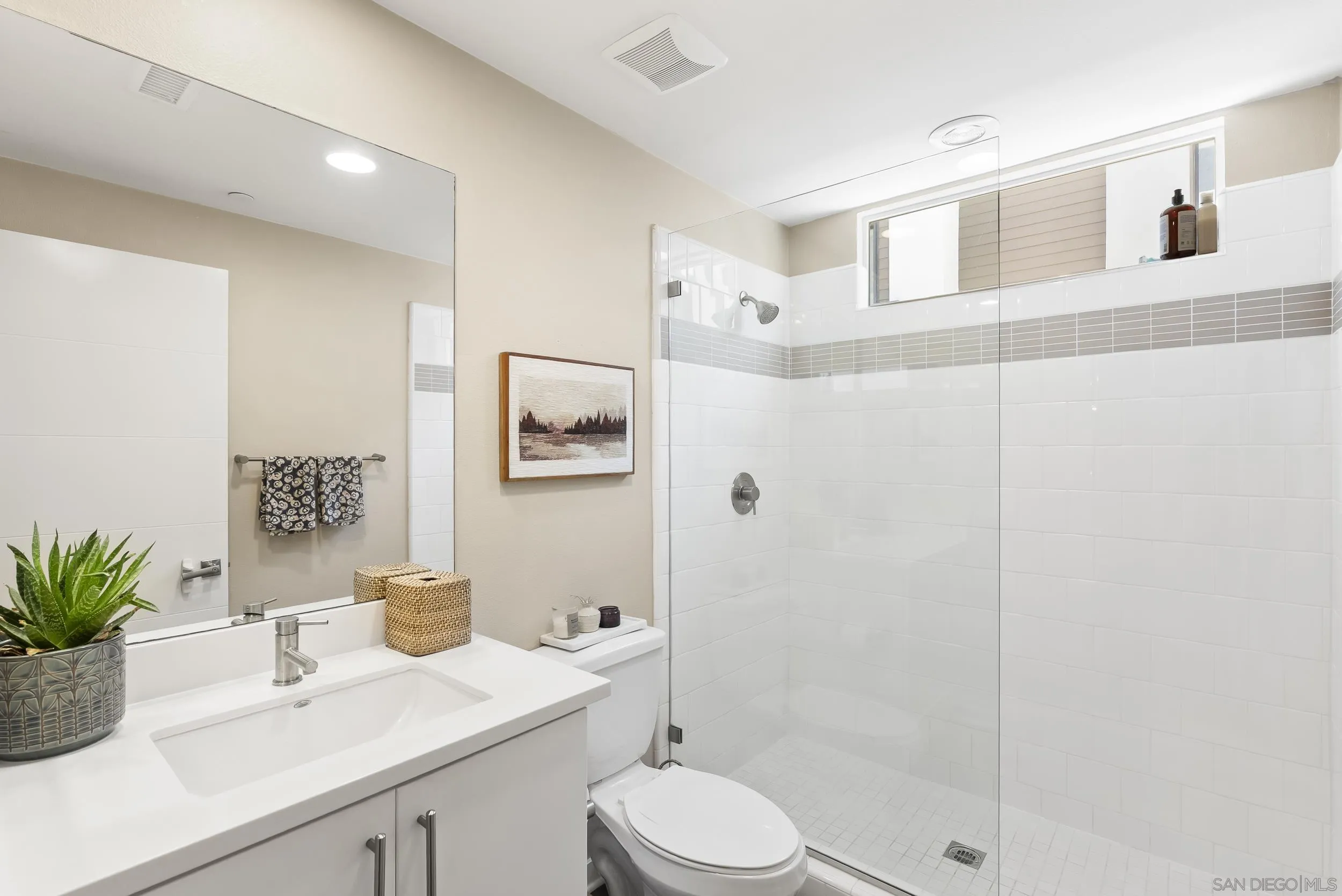 Modern Coastal Living in Carlsbad. Set within the heart of Carlsbad Village, this three-bedroom residence brings together clean design, functional living, and a coastal setting that speaks for itself. The main living level is open and efficient, with a seamless flow between kitchen, dining, and living spaces. Recently upgraded throughout, the interiors feature new flooring across the home, complemented by thoughtfully redesigned stairs with a custom tile inset. The kitchen has been fully reimagined with all-new cabinetry, updated backsplash, and modern lighting, creating a clean and elevated focal point. A private balcony extends the space outward, offering a natural pause point off the main level. Above, a private rooftop deck creates an additional layer of living—suited for quiet mornings, small gatherings, or simply taking in the coastal air. Designed for ease, the home also includes a fully finished garage with upgraded flooring, in-unit laundry, and fully paid solar, supporting both everyday functionality and long-term efficiency. Positioned just moments from the shops, restaurants, and coastline of Carlsbad Village, this is a more considered approach to low-maintenance coastal living.