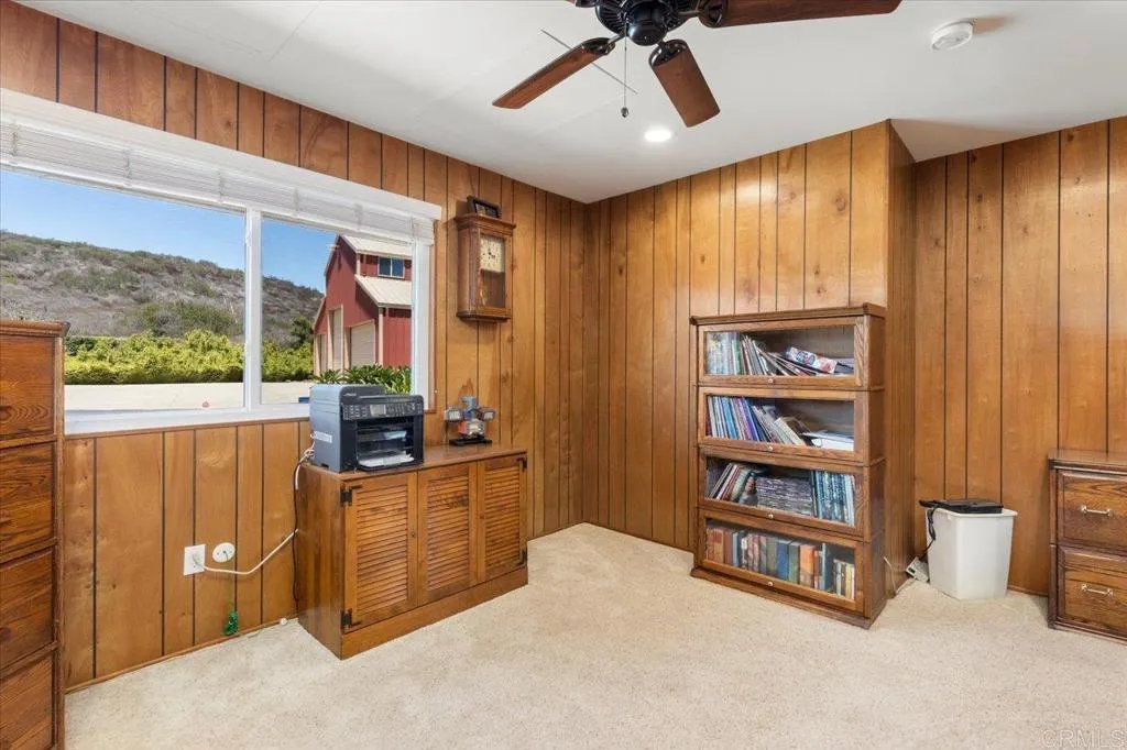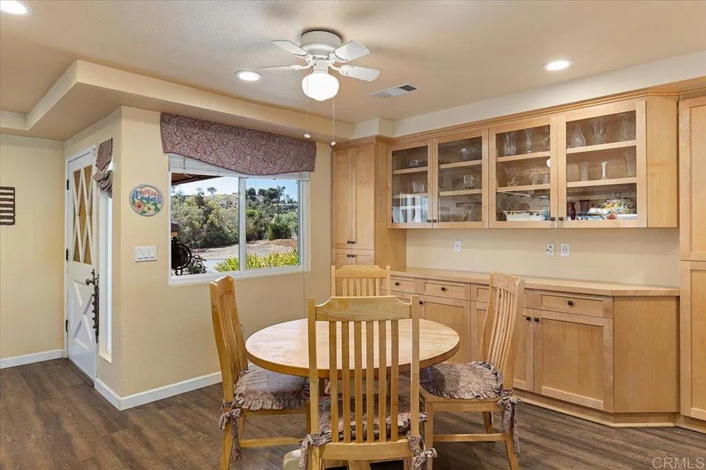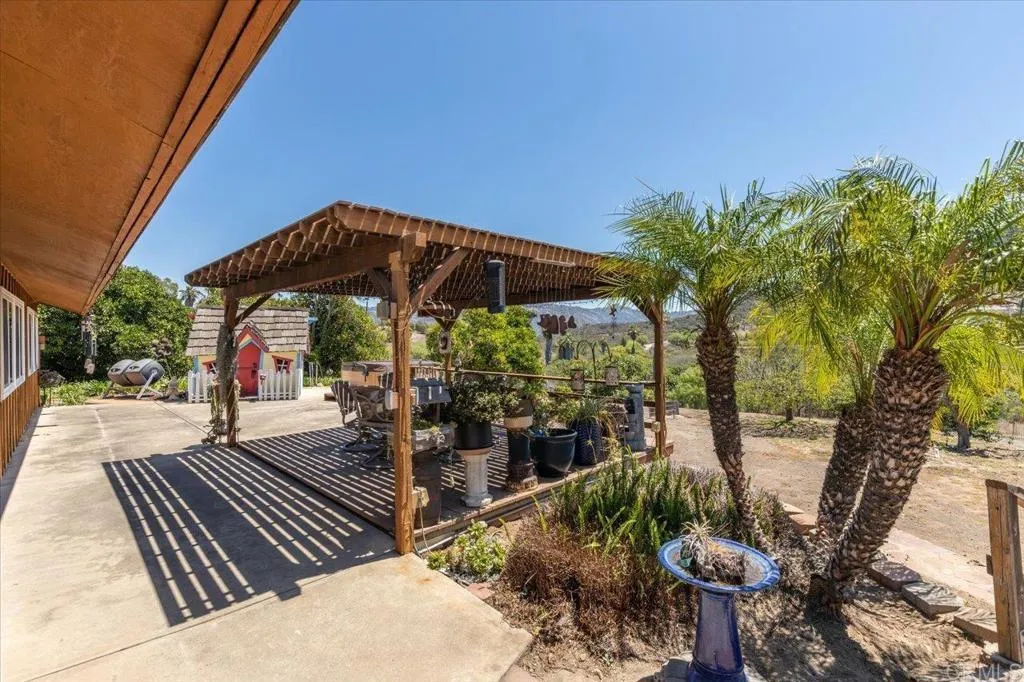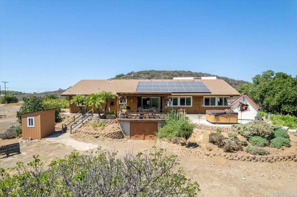 3.48 private acres, a massive RV barn/workshop, and a spacious single-level custom home close-in but very secluded! This one-of-a-kind property is perfect for a home-based business, hobbyist, or anyone craving space, privacy, and endless possibilities including a 40' x 50' RV barn/workshop with two-story ceilings, an oversized 3-car garage, and a 2,629 sq. ft. beautifully maintained home with paid for solar. The 40' x 50' metal barn offers abundant storage and extensive parking, ideal for large equipment, RVs, or recreational vehicles or car collection. The gently sloping 3 acres are ready for your vision start a cash crop, create gardens, keep animals (as zoning permits), or design your dream outdoor retreat. Inside, pride of ownership shines. The spacious great room boasts vaulted ceilings, a masonry fireplace, and a large, custom wet bar an entertainers dream. The large kitchen features beautiful birchwood shaker style cabinetry, generous counter space, a center island with electric cooktop. The primary suite offers a private dressing area, separate toilet room, and an oversized walk-in closet. All bedrooms are generously sized, and three bathrooms including one in the garage for added convenience. The oversized garage accommodates up to three cars plus additional storage. Outdoor living is equally inviting with a covered back porch, deck with patio cover, above-ground spa, and a charming playhouse for kids or grandkids. With no close neighbors, youll enjoy peace and privacy yet quick access to Gopher Canyon Road puts Vista, Bonsall, and Escondido within easy reach.