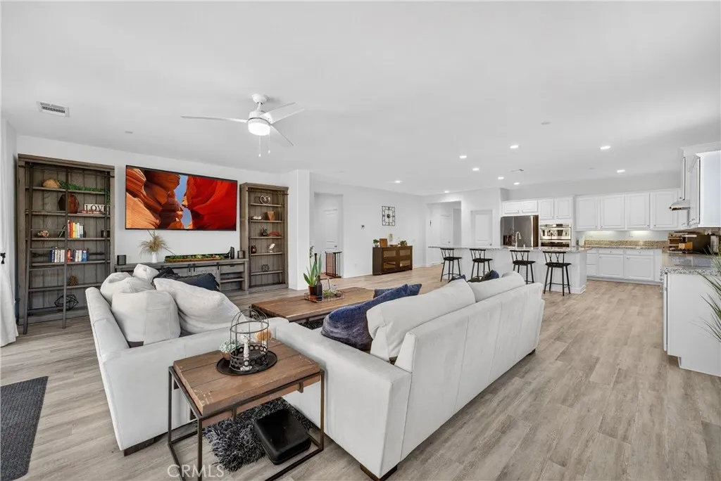 Welcome to Aurora Heights! Built in 2020, this stunning single-story home offers 2,429 sq. ft. of open-concept living on an 8,160 sq. ft. lot. Features include 3 bedrooms + bonus room, 3 full bathrooms, one of them being a jack and jill, and a gourmet kitchen with large island, granite countertops, stainless steel appliances, walk-in pantry, and tri-fold sliding doors opening to a covered patio and private backyard. The spacious primary suite offers hillside views, walk-in closet that is connected to laundry room, and spa-like bath. Additional highlights: owned solar, laminate flooring, 3-car garage tandem, and no Mello-Roos. Community amenities include pool, spa, sport courts, clubhouse, playground, BBQ, and fire pit. Conveniently located near I-15, wineries, golf, hiking, and shopping.