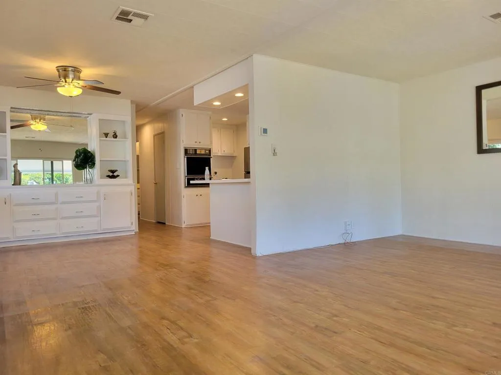Welcome to this meticulously maintained mobile home, designed for convenience and modern living. A gently-sloping ramp provides effortless access to the entrance. Step inside and be greeted by an open, sun-drenched living area, where a wall of wide windows with newly replaced frames offers a picturesque view of the community's lush flower and plant. The home's flow is enhanced by durable laminate flooring that extends throughout, creating a clean and cohesive look. This thoughtfully designed home features a comfortable floor plan, including a spacious primary suite with its own private bathroom, offering a peaceful retreat at the end of the day. A second bedroom and a full additional bathroom provide ample space and convenience for guests or family. The outdoor spaces are just as impressive. Covered areas on both sides of the home provide versatile protection for parking and outdoor activities. You'll also find two spacious sheds, perfect for extra storage. This property truly provides the best of both worlds: a beautifully updated interior, a functional layout, and comfortable outdoor amenities.