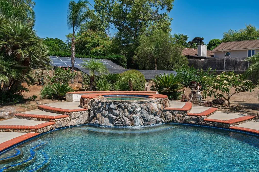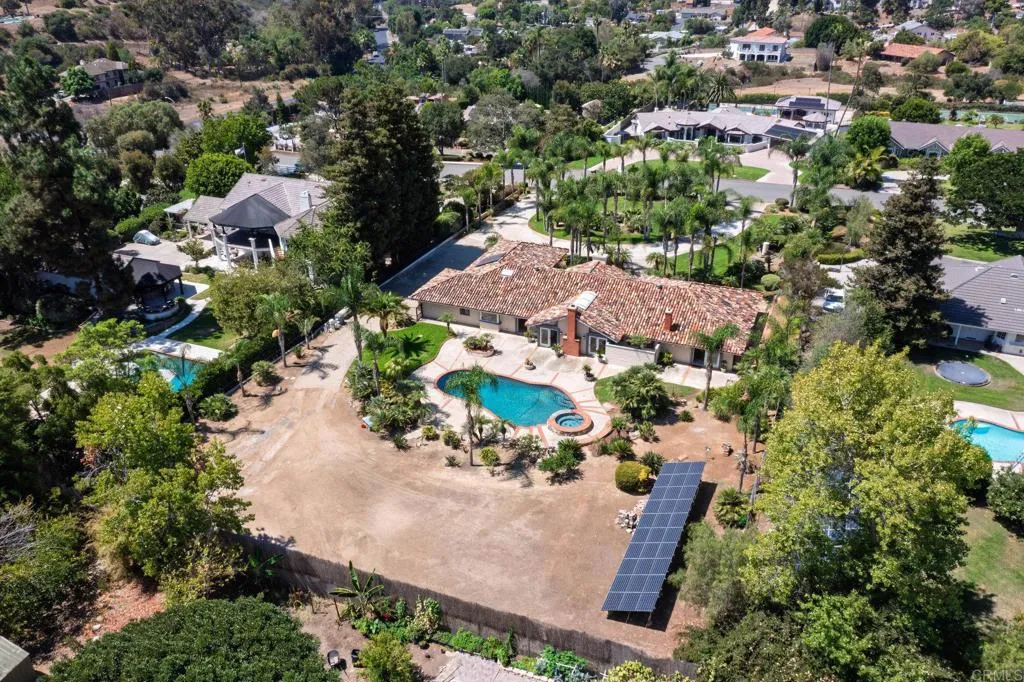 Welcome to this stunning single-story estate on one of Vistas most sought-after streets set on nearly an acre (.95) with a circular driveway, and a private automatic gate leading to the saltwater pool and huge backyard. This 4-bedroom, 3.5-bathroom home offers exceptional privacy, space, and luxury. A 3-car garage with a convenient half bath, 30 panel solar system, well for landscaping, whole house fan, and water filtration system add to the homes functionality and efficiency. Plenty of space is available for an ADU, RV, or recreational toys. Step through the custom double front doors into a bright and open floor plan designed for both entertaining and everyday living. The formal dining room features built-in display cabinetry, while the living room offers a cozy fireplace. The spacious family room boasts vaulted ceilings, skylights, track lighting, a ceiling fan, a fireplace, and a wet bar with a refrigerator. The chefs kitchen is beautifully appointed with Dacor double ovens, a Sub-Zero refrigerator, an ice maker, a Viking cooktop on the center island, a breakfast nook and a garden window overlooking the sparkling saltwater pool and backyard. The primary suite is a true retreat with two closets, a fireplace, and direct access to the backyard. The spa-like primary bathroom includes a separate shower and soaking tub, Toto toilet and bidet, and views of the private atrium. Additional bedrooms are complete with ceiling fans, while the laundry room includes a utility sink. Upgrades such as stone flooring, plantation shutters, crown molding, soft fit ceilings, retractable scree
