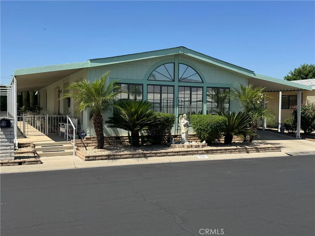 Beautiful 2-Bedroom Home (Space #58) in Mountain View Park (55+ Community East Hemet). This charming 1,440 sq. ft. home is located in one of East Hemets most desirable 55+ communities, Mountain View Park. Enjoy stunning open views from the living room with scenic mountain backdrops. The spacious kitchen includes a cozy breakfast area, cooktop and hood, KitchenAid dishwasher, double sink, pull-out storage, and attractive laminate flooring. The ceiling features decorative wood beams that add warmth and character. Additional highlights include solar shades on the east side, ceiling fans in every room, and a dedicated laundry room with a wash sink and convenient built-in desk area. Outside, the yard is fully fenced and beautifully landscaped with a plum tree and inviting patioperfect for relaxing or entertaining. This one is a true charmermove-in ready and full of warmth!