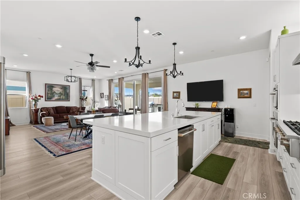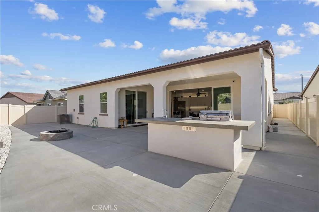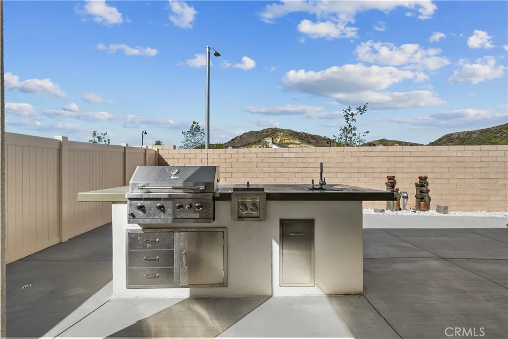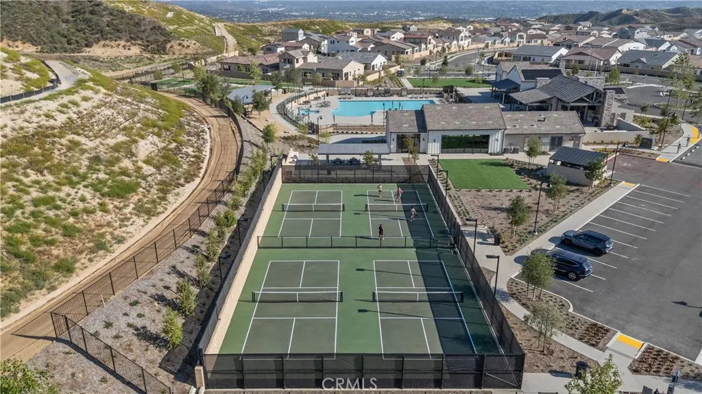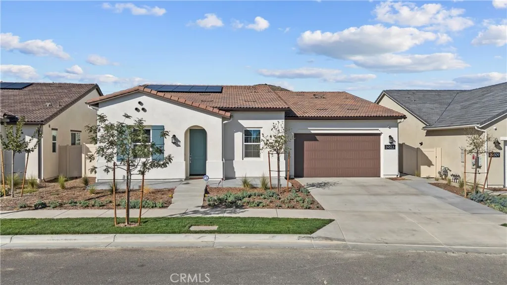 Experience elegant, resort-style living in this 2024 built Estrada 3 home, located in the prestigious Tesoro Highlands 55+ Valencia community. This well-manicured and open concept home offers 2,530+ sq ft and features 3 bedrooms, an office, and 3.5 baths. Enjoy a chef's kitchen with stainless steel appliances, a 6-burner gas range, a large island with seating, a walk-in pantry, and an adjacent dry bar. Quality vinyl flooring, high ceilings, and custom four-panel sliding doors create seamless indoor-outdoor living, perfect for entertaining. The primary suite offers a large walk-in closet and patio access, plus an en-suite with a walk-in shower and double vanity. Luxury extends to the outdoors with a custom built-in BBQ, sink, and firepit and relaxation under the covered patio. The home includes owned solar panels, a two car-attached garage with direct access, an EV charger, central AC/heat, and a tankless water heater. Enjoy exclusive community amenities, including pools, a spa, a fitness center, pickleball courts, a clubhouse, a dog park, and organized events and activities.