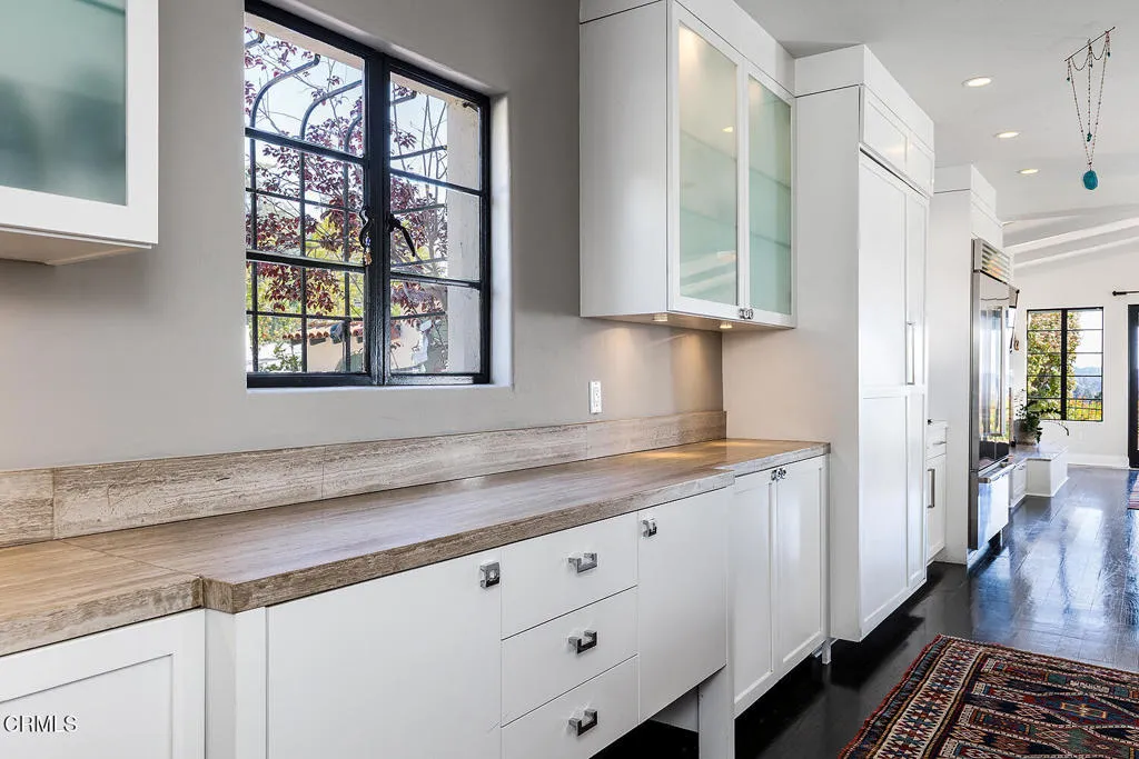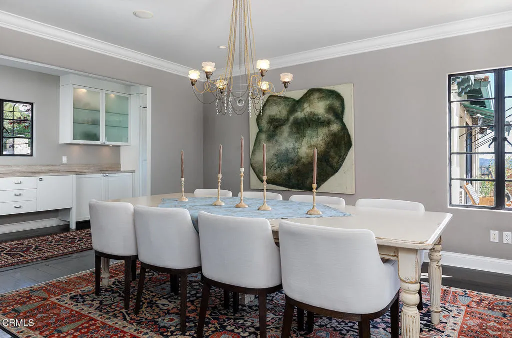 In 1926, at the height of Glendale's golden era of architectural expansion, Samuel G. McClure -- publisher and owner of the Glendale News Press -- purchased a prominent knoll overlooking the growing city below. With an eye for beauty and a taste for the grand, he commissioned the construction of a Spanish masterpiece that would blend the romanticism of old-world design with the grace of California living. Nearly a century later, this extraordinary residence remains one of Rossmoyne's most admired homes - a work of residential art that has stood the test of time. Much like the celebrated Kennedy House in Palo Alto, this residence is a stunning example of symmetrical Colonial Spanish architecture. The home's exterior is defined by its classic proportions and rich period details - handmade decorative tiles, original steel casement windows fitted with wrought-iron grilles, smooth stucco walls, and a series of graceful arches that repeat as a unifying motif both inside and out. Each element tells a story of craftsmanship and splashes of modern artistry enhancements. The stately entry introduces the home's grand scale and impeccable design sensibility. Beyond the foyer, a museum-like formal living room unfolds beneath a soaring wood-beamed ceiling. Light streams through the expansive picture window, illuminating wide-plank wood floors, a commanding fireplace, and a custom wet bar that invites evening conversation. Every corner reveals the thoughtful touch of artisans who had entertaining in mind. The remodeled kitchen reimagines tradition with modern luxury. Anchored by a 60-inch