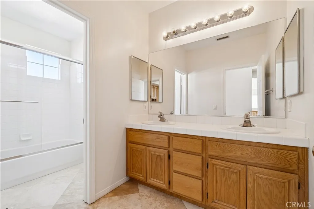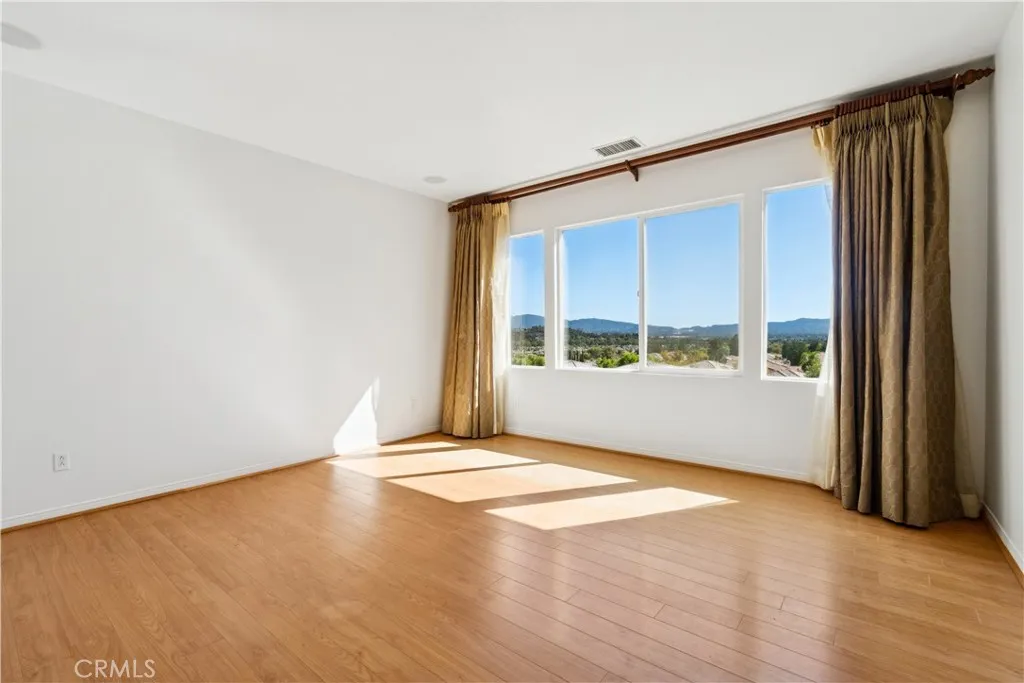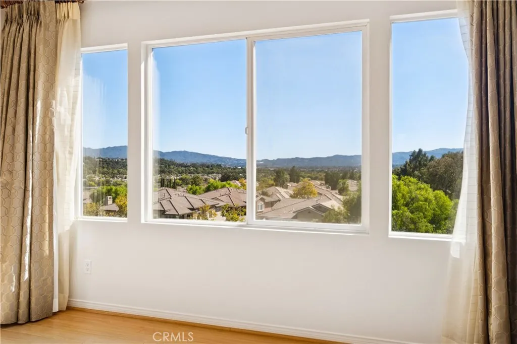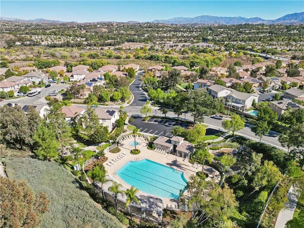 Exceptional location for this 4 bedroom Valencia home with panoramic views of the valley. Originally the model home in the popular "Promontory" neighborhood, this home sits at the end of the cul-de-sac with a private, low maintenance yard, covered patio and stamped concrete hardscape. Just spectacular views! Open floorplan with travertine and wood flooring and fresh paint throughout. High ceilings and lots of windows also provide tons of natural light and a great vibe. Truly move in condition. 3 large bedrooms upstairs and the 4th is downstairs with the 3rd full bath. Large kitchen with granite counters and the family room is especially spacious. Valencia Copperhill is popular for low HOA with pool, paseos and all the nice amenities all with no Mello Roos taxes. Come home to Valencia!