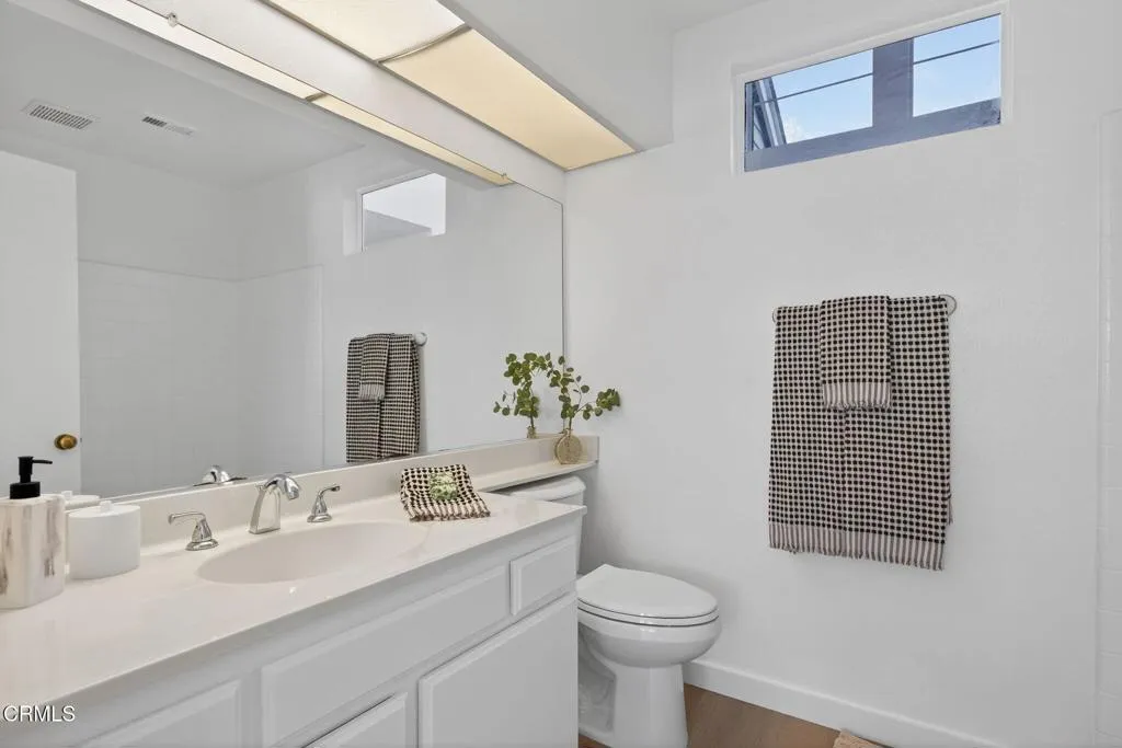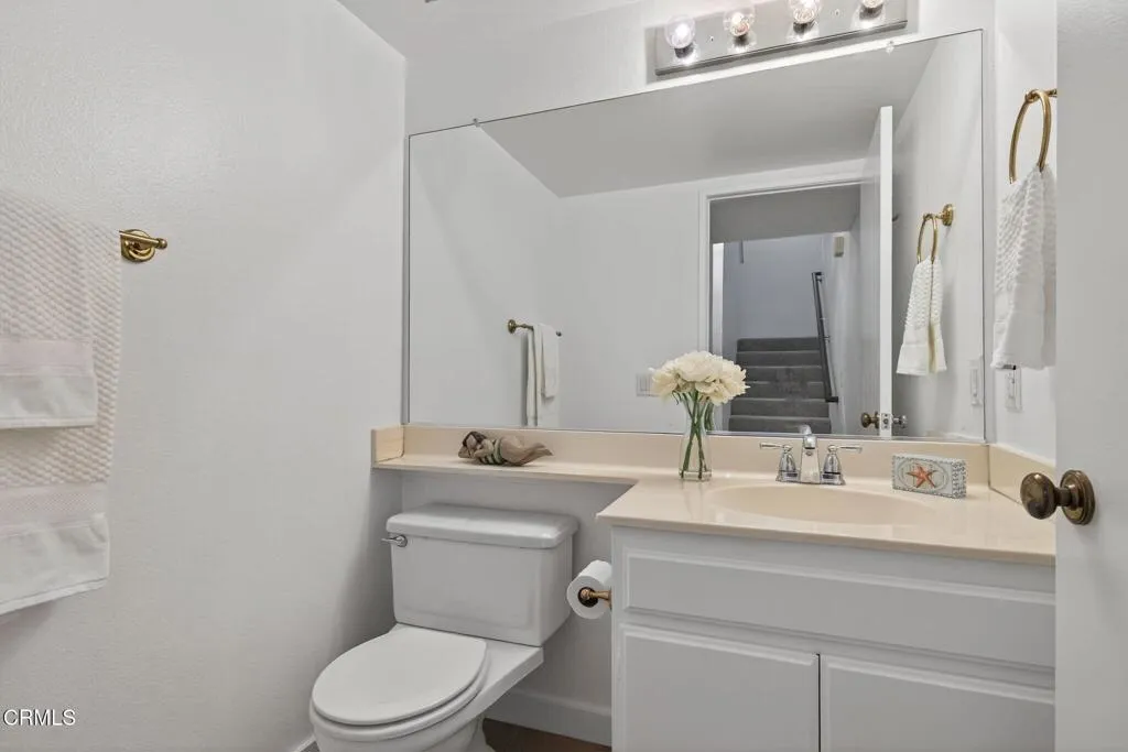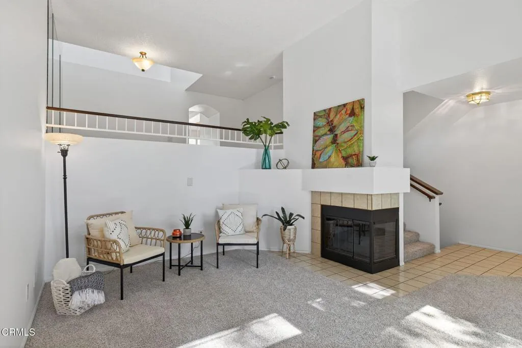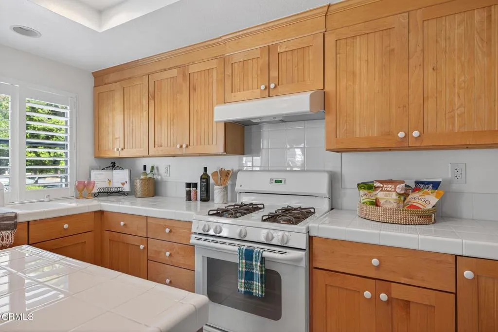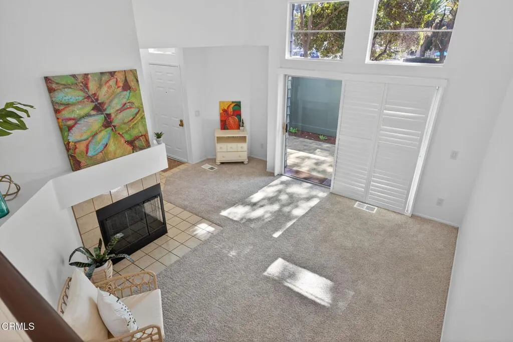 Well-located townhome in Ventura's Cape community!The inviting layout features two bedrooms with en suite baths plus a main-level powder room. A formal dining room overlooks the spacious living room with fireplace below, while the great-room-style kitchen includes a breakfast island, casual dining nook, and adjacent family room. Fresh interior paint, new carpet, and updated bathroom flooring (completed Sept/Oct 2025) give the home a bright appeal. Soaring ceilings fill the rooms with natural light, and the surrounding mature trees create pretty views and provide shade, which keeps the home cool. The kitchen was updated with maple cabinets including a pantry with pull-out drawers. Newer faucets and 2 of the 3 toilets were replaced Oct 2025. Step outside to the private patio with brand-new pavers (installed Oct 2025). Additional highlights include a convenient two-car garage with direct access, laundry in the garage, a new furnace (installed Aug 2025), and generous guest parking. (This floorplan has some flexibility - some neighbors use the formal dining room for a den, home office or even a gym! The upstairs two bedrooms have some separation between them via the corridor with a linen cabinet that is also open to the dining room below.)Enjoy a lovely pool and meandering pathways, all in a prime Ventura location close to parks, schools, fitness gyms and studios, dining, retail, the government center and commuter routes. Perfectly positioned 'cul-de-sac' driveway to garage, with the front door off a meandering path tucked behind landscaping on Telephone Road. This is across fro