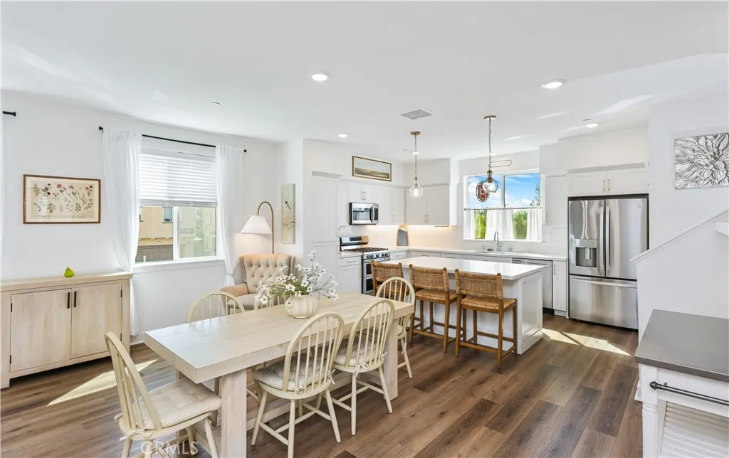 Welcome to your dream home in Southwest Anaheim! This end unit newer construction 3-bedroom, 2 full, 2 half-bath townhouse in the Townes at Broadway community is centrally located with easy access to the West Anaheim Medical Center, Fairmont Preparatory Academy, and nearby schools. Only 1 shared wall! Original owners. PRIME UPGRADES throughout the homes including the kitchen and flooring, natural lighting, attached garage with epoxy floors, a water softener, fully paid off SOLAR PANELS, EV charging ready and a smart home system for modern convenience. Appliances are included! Shared community amenities such as a pool, spa, BBQ picnic area, and fire pit lounge enhance your living experience.