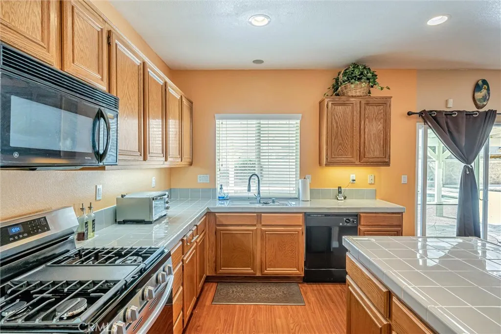 Welcome to this stunning 5-bedroom, 3-bath home offering 2,373 sq. ft. of elegant living space on a spacious 9,304 sq. ft. lotan entertainers dream! Enjoy a bright formal living and dining area with stylish laminate flooring throughout. The gourmet kitchen features a large island and opens to a cozy family room with a fireplace. A main-floor bedroom, full bath, and laundry room add convenience. Energy-efficient leased solar panels help lower utility costs. Step outside to your private resort-style backyard with custom stamped concrete, a sparkling pool, pool house with a full bath, and RV access. A 3-car garage and extended driveway provide ample parking. Close to parks, shopping, and freeway accessthis home truly has it all! Dont miss the chance to own this incredible propertyschedule your private tour today!