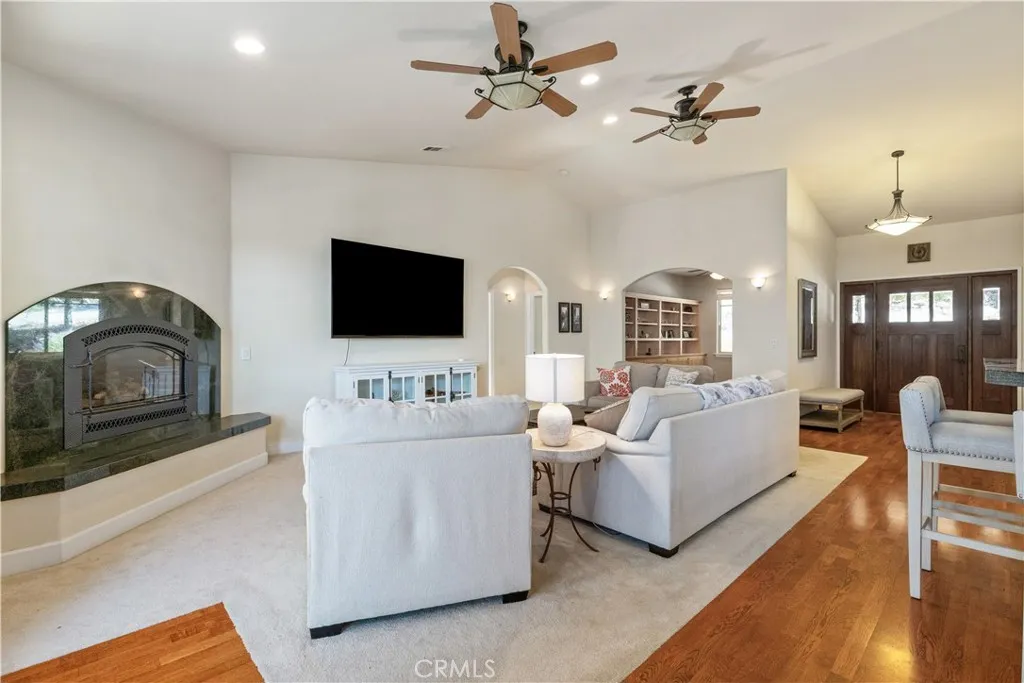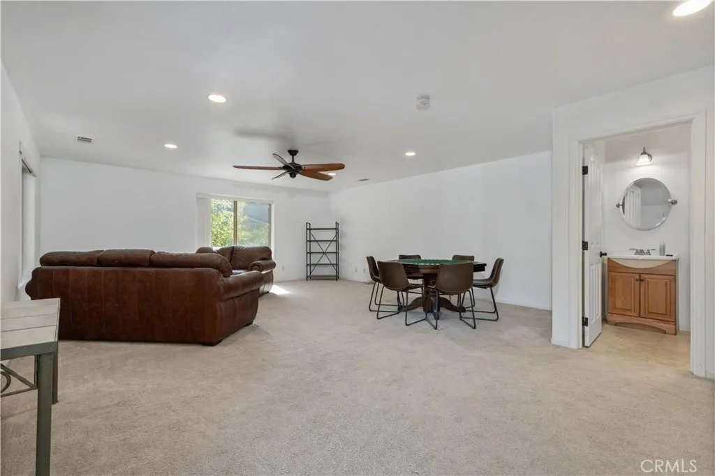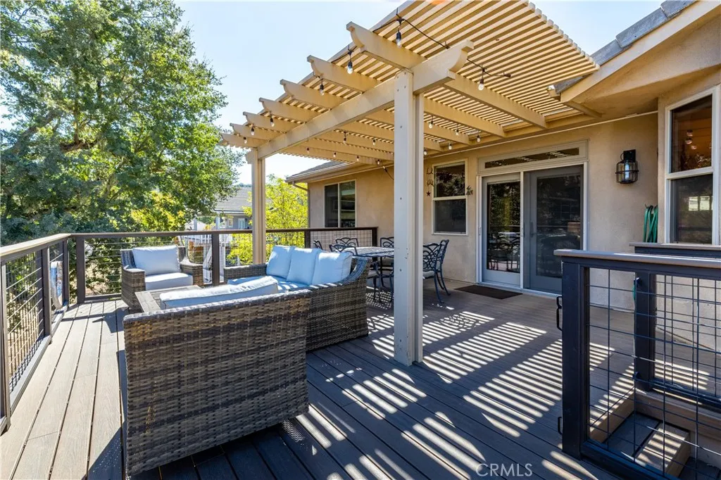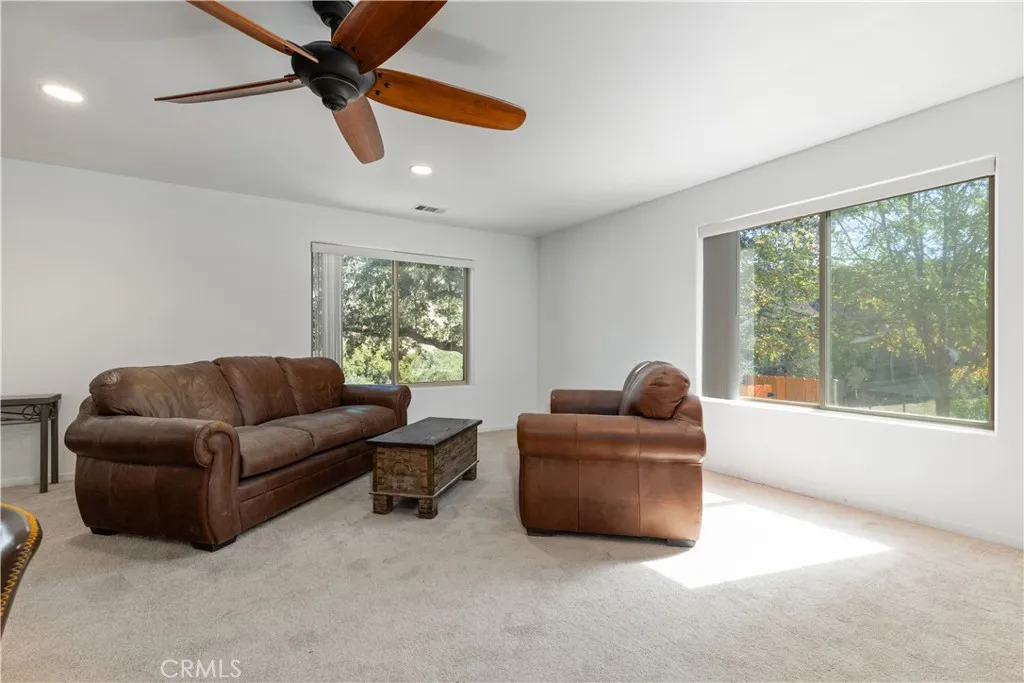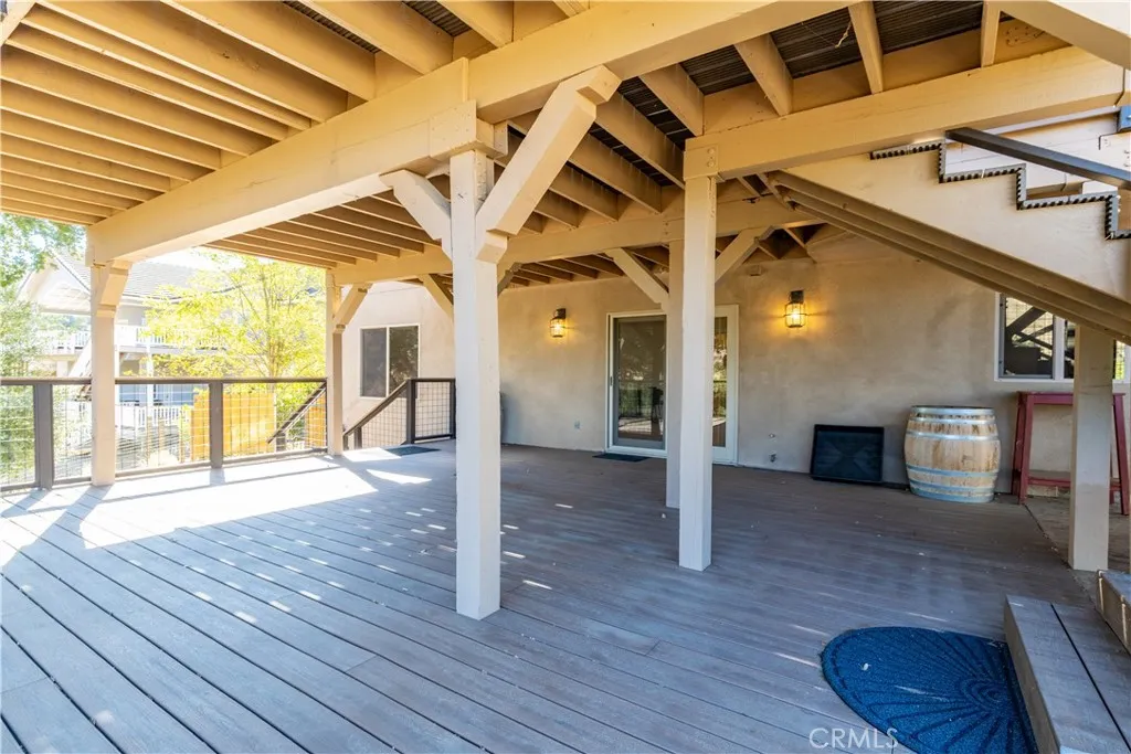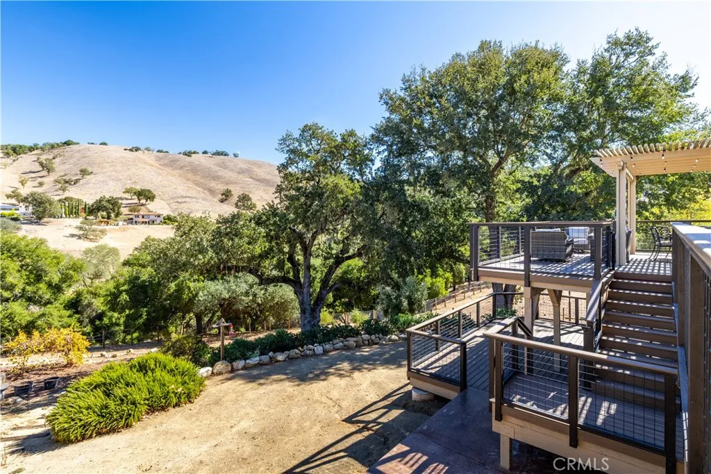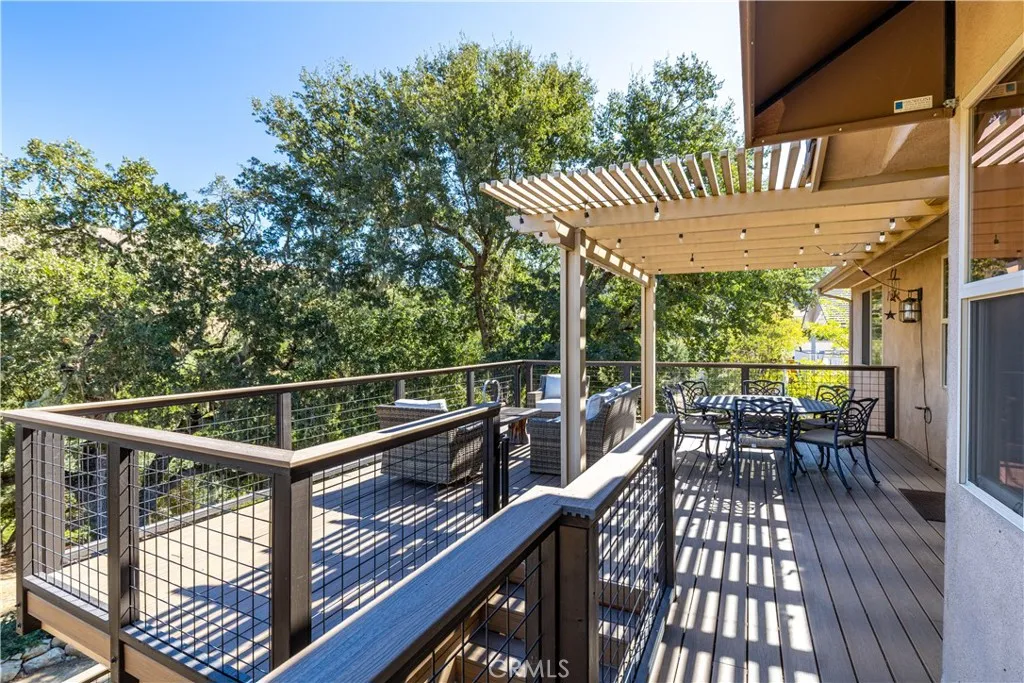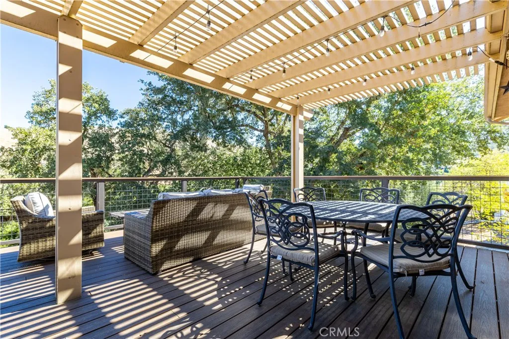Custom-built, luxurious single-level home situated in the sought after gated community of Riverview Estates at Lake Nacimiento, part of the desirable Heritage Ranch community. This exceptional property showcases breathtaking panoramic views from almost every room across its 1.2-acre setting surrounded by natural beauty. Designed with both comfort and elegance in mind, the open floor plan features high ceilings, expansive windows, and natural light throughout. Below the main level sits an 800+ sq. ft. guest unit with its own entrance, deck, kitchen, and bathperfect for guests, multi-generational living or maybe potential income? There is double gated entry on side of home for access to backyard. The gourmet kitchen boasts custom cabinetry, granite countertops, abundant storage, and high-top bar seating that opens to the dining and living areasideal for entertaining. The family room centers around a granite fireplace, complemented by a separate living room, office with built-ins, and a hallway lined with storage. The oversized primary suite offers a peaceful retreat with a sitting area, stunning views, and a spa-inspired bath with a walk-in closet. Additional highlights include a full-size laundry room, utility room, and a 3-car garage. A true bonus is the nearly 1,000 sq. ft. workshop and hobby roomideal for projects, storage, or a potential wine cellarwith a garage door and side access for off-road toys, tractors, or golf carts. Enjoy seamless indoor-outdoor living with 2,000 sq. ft. of newer Trex decking and a pergola extending from the family room. The front porch with re