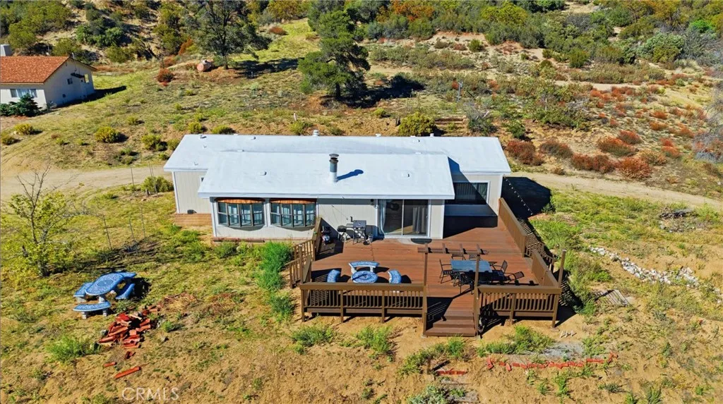 Welcome to Dickson Hills, one of Anzas most sought-after view locations! This rare 10-acre retreat features two homes on one parcel, a site-built single-family residence and a beautiful manufactured home each offering comfort, privacy, and breathtaking views of the surrounding mountains and valleys. The main residence is a charming 2-bedroom, 1-bath home with approximate 1300 SQFT of living space a spacious living room, large open kitchen, and attached two-car garage. Enjoy relaxing afternoons from the sun room overlooking panoramic hillside views. The home is equipped with an evaporator cooling system and heat creating year-round comfort. The second home with approximate 1700 Sqft of living space , a fully remodeled Triple Wide manufactured home with a remodeled kitchen, new roof, all new exterior panels, new flooring throughout and new recessed lighting, offers an inviting 2 bedroom, 2-bath layout with an open concept great room that combines the living, dining, and family areas. Highlights include a large master suite with oversized windows capturing stunning views, a cozy fireplace, and a luxurious master bath. The home also features a laundry/mudroom, double-door entry and a spacious wraparound remodeled Tree composite deck perfect for entertaining or enjoying Anzas tranquil sunsets. Heating and air condition is supplied throughout the home via a newly installed mini-split system. The property enjoys paved road access via Hill Street, abundant usable land ideal for gardening, horses, off-roading, or future expansion, and unparalleled privacy in a peaceful rural setting