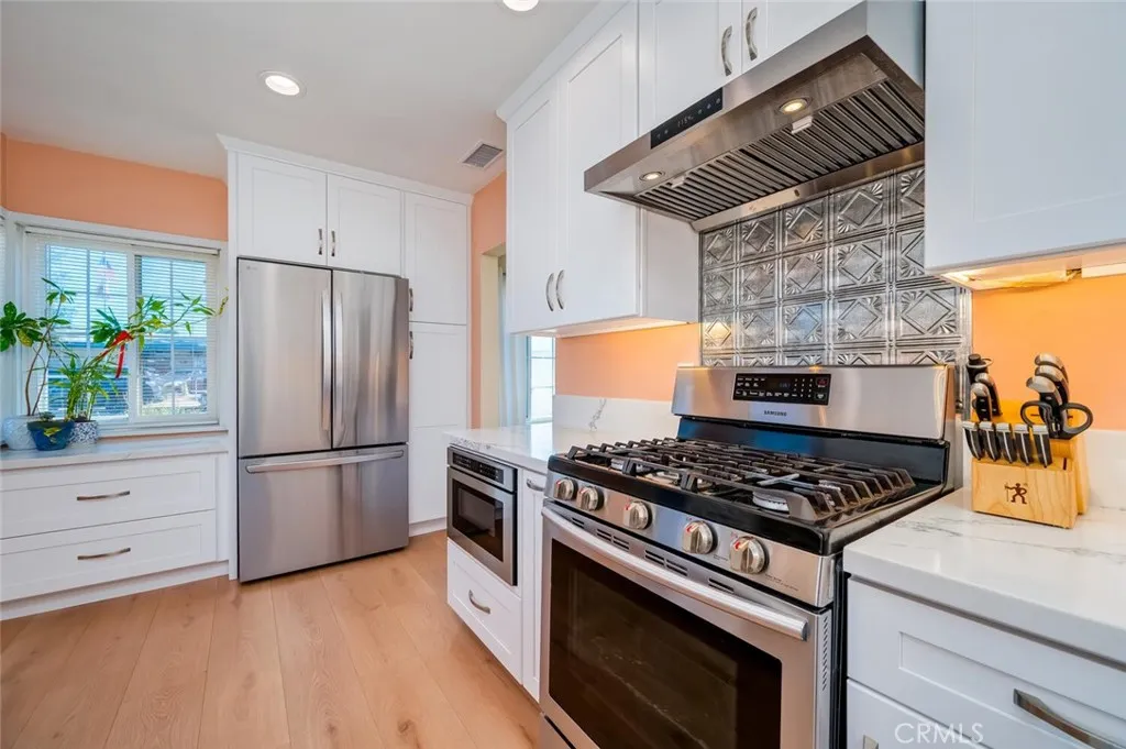 4 Beds | 2 Baths | Upgraded Throughout | Prime Location Near Old Towne Orange! Welcome to a beautifully refreshed home blending timeless charm with modern upgrades. This property has been updated and expanded from top to bottom to offer style, comfort and peace of mind. Primary bedroom on the main floor with a second main bedroom currently used as an office add to the comfort and utility of this home. Step inside to a bright, inviting floor plan featuring a stylish interior renovation with new laminate flooring and baseboards in the kitchen and large, inviting family room and newer carpet in the bedrooms. The kitchen was transformed with new cabinets, quartz countertops, Bosch dishwasher, refrigerator, drawer microwave, garbage disposal and modern range hood with proper ventilation. Both bathrooms shine with new vanities, fixtures and raised showerheads. Major system upgrades include new PEX plumbing, replacing old galvanized pipes and an upgraded 200-amp electrical panel with all knob-and-tube wiring removed for peace of mind. A new Carrier 4-ton furnace and A/C system ensures year-round comfort, while fresh paint inside (2011 & 2024, refreshed in 2025) and exterior stucco work give the home a crisp, clean look. Popcorn ceilings were removed in the family room, creating a modern, open feel. Additional touches include new interior and entry doors, recessed lighting in the kitchen, bedrooms and hallways, ceiling fans in the family room and bedrooms, closet lighting, additional outlets and Christmas light outlets under the eaves, updated door handles and drawer pulls. Enjoy t