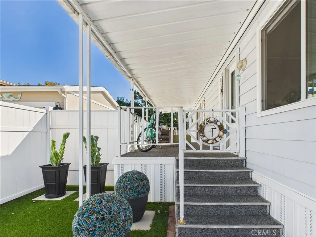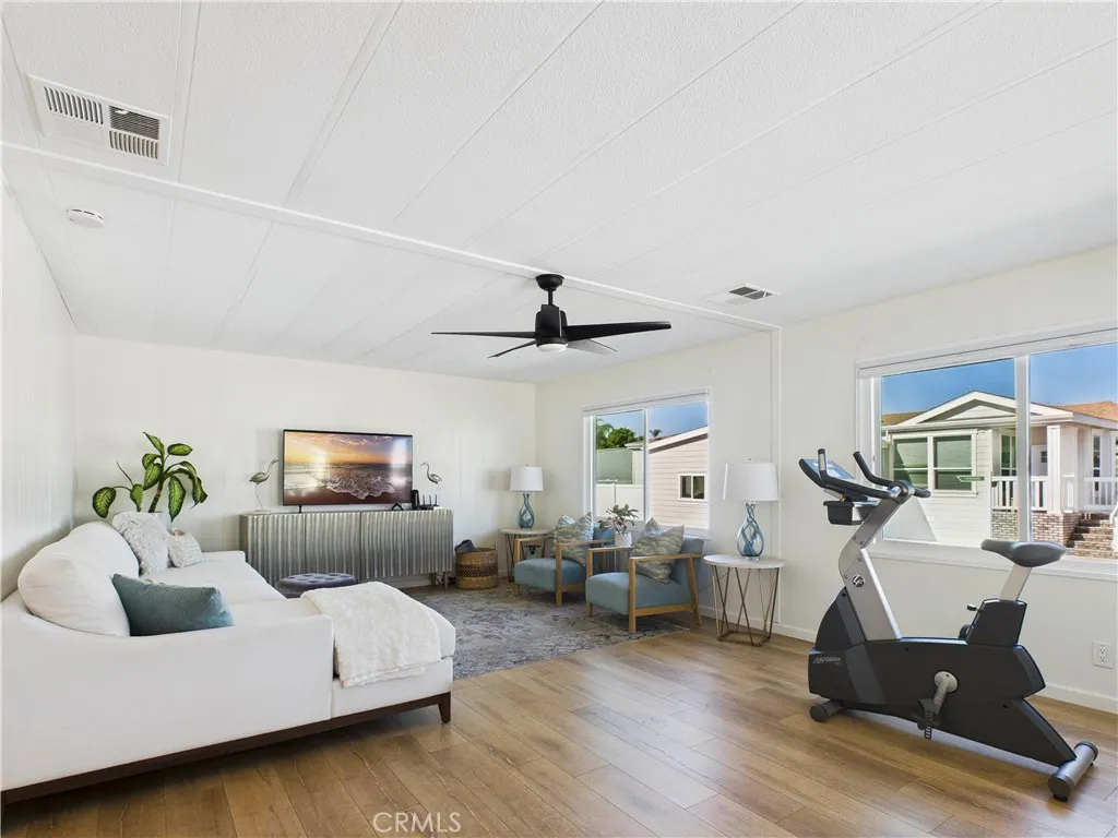 Welcome to this fully renovated home in the highly sought-after Huntington Shorecliffs community of Huntington Beach. Perfectly situated in a prime location within the community, this beautifully updated manufactured home offers convenience and comfort just moments from the beach. The home sits near one of the parks common areas featuring a spa, barbecue, and seating area ideal for gatherings and relaxation. A pedestrian-only entry and exit gate is located just across the street from a local park and about a block away from Pacific City, offering premier shopping, dining, and entertainment all within walking distance. Step inside and youll find a bright, open floor plan filled with abundant natural light and thoughtfully designed living spaces. The home features new double-pane windows throughout, updated flooring, and a newly remodeled kitchen complete with stainless steel appliances, modern cabinetry, and upgraded counters. Adjacent to the kitchen is a dedicated laundry area with sink and cabinetry for added convenience. The updated bathrooms have been tastefully designed, and both bedrooms feature generous closet space including walk-in options. Enjoy seamless indoor-outdoor living with a large covered side porch, perfect for relaxing or entertaining, which opens to a spacious private patio and yard area. The exterior has been professionally landscaped with low-maintenance design, and the home also includes central A/C, providing year-round comfort. Huntington Shorecliffs residents enjoy a convenient pedestrian gate with direct access to Pacific City, the beach, and nea