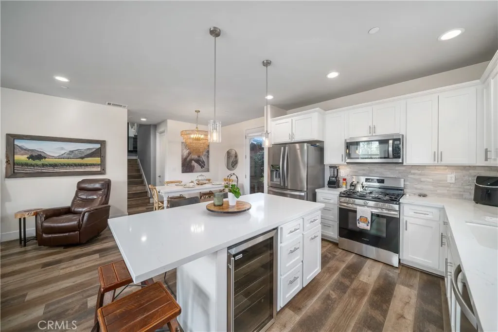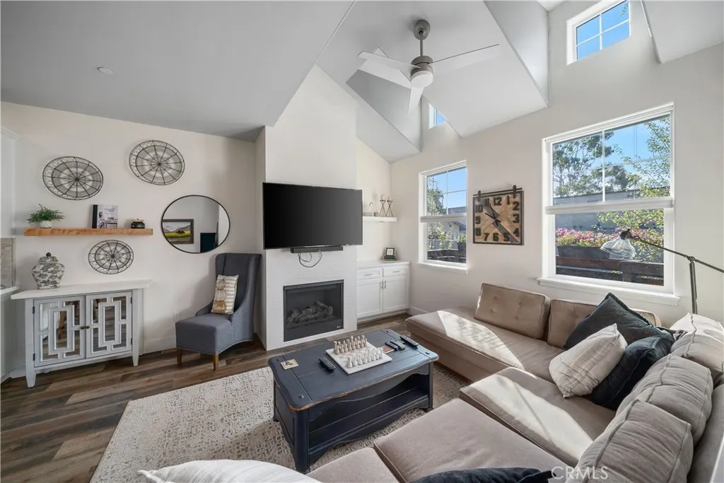 Welcome to a beautifully designed home and licensed vacation rental that blends modern sophistication with relaxed Central Coast living. Every detail has been thoughtfully crafted to create a space that feels open, bright, and inviting from the moment you walk in. The main level features a seamless open-concept layout with vaulted ceilings, dormer windows, and abundant natural light. The inviting family room centers around a sleek gas fireplace and connects effortlessly to the dining area and chefs kitchen. The kitchen is equipped with quartz countertops, a stone backsplash, white shaker cabinets, stainless steel appliances, and a large center island with bar seatingperfect for casual dining or entertaining guests. A convenient half bath completes the downstairs living area. The finished garage with epoxy floors offers a versatile space for parking, a home gym, or storage, while the adjacent laundry room includes cabinetry and a wash sink for added functionality. Upstairs, two spacious en suite bedrooms provide privacy and comfort, each featuring dual sinks and modern finishes. The primary suite showcases vaulted ceilings, a walk-in closet, and a luxurious walk-in shower. A cozy retreat at the top of the stairs makes the perfect space for a home office, reading nook, or creative corner. Step outside to your private backyard oasis designed for relaxation and entertaining. Two custom pergolas, a fire pit lounge, a spa, and lush landscaping create a resort-like setting surrounded by wood decking and stone pavers. Whether youre hosting gatherings or enjoying a quiet evening und