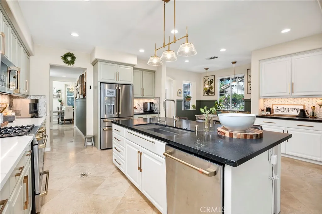 Just 200 Steps from the Lake! Welcome to this stunning remodeled Harveston home offering the perfect blend of modern comfort and timeless charm. Featuring 4 bedrooms, 2.5 baths, and a 3-car tandem garage, this beautiful residence is ideally located just moments from the lake, walking paths, and community amenities. Step inside to a formal living and dining room with elegant designer touches throughout. The upgraded kitchen is a showstopper, featuring Soapstone countertops, GE Caf appliances, custom backsplash, pendant lighting, under-cabinet LED lighting, new hardware on all cabinetry, and a new reverse osmosis system. A butlers pantry off the kitchen provides ample storage and prep space, while the breakfast nook showcases beautiful custom wainscoting, adding warmth and charm. Upstairs, youll find all four bedrooms, including a spacious primary suite with walk-in closet, dual sinks, soaking tub, and separate shower. Just off the primary suite is a dedicated tech center, perfect for a work-from-home setup or private study area. The guest bathroom features a brand-new walk-in shower, and the laundry room is conveniently located upstairs for added ease. Enjoy outdoor living in the private backyard with no rear neighbors, complete with an in-ground spa with waterfall and built-in BBQ, ideal for relaxing or entertaining. A gated entry and extra-long driveway offer both privacy and convenience. Recent upgrades include new dual-pane windows, water heater, water softener, reverse osmosis system, new carpet, powder room vanity, updated plumbing and faucets, new toilets, and custom