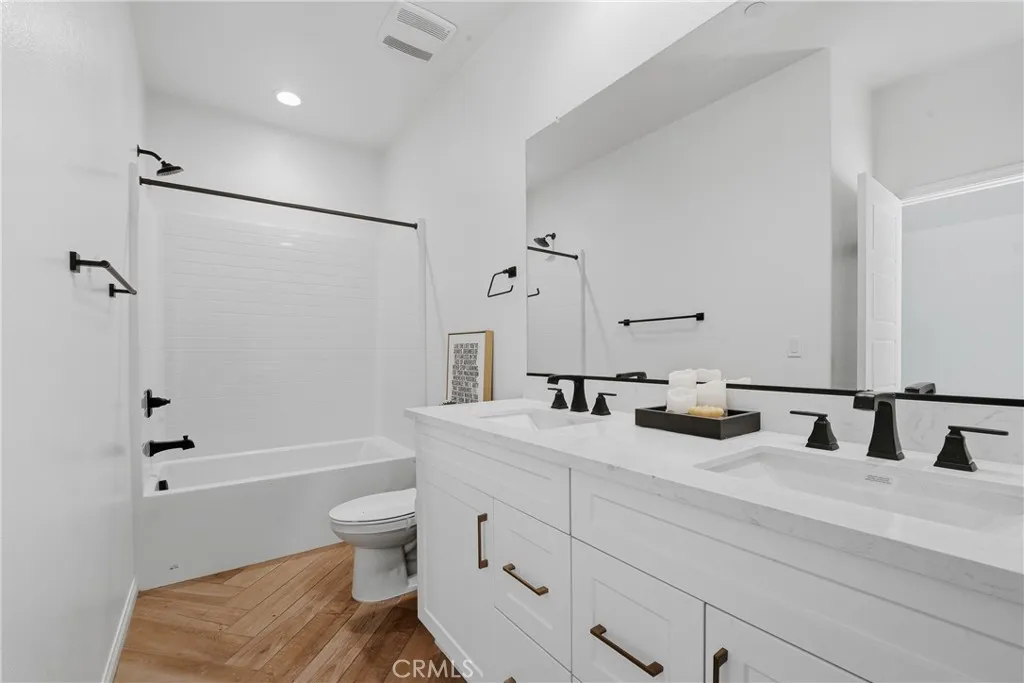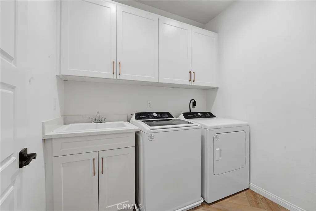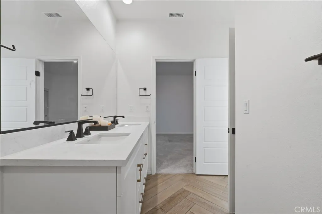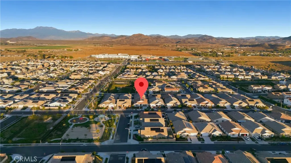 Welcome to Liberty at Braverde, one of Menifees most desirable master-planned communities. This stunning Paige floor plan home sits on an over 6,000 sq. ft. lot and blends style, comfort, and functionality. Featuring a private study, 2-car garage, indoor laundry room, and thoughtful upgrades throughout. The main living areas include designer chevron tile flooring, while bedrooms offer plush, upgraded carpet. A premium electrical package with custom lighting and solar ensures efficiency and elegance. The chefs kitchen highlights quartz countertops, a chevron backsplash, deluxe appliances, a walk-in pantry, and an extended center island, opening to a spacious living and dining area with a custom floor-to-ceiling fireplace. The primary suite offers a spa-inspired bath with dual vanities, a soaking tub, a walk-in shower, and a large walk-in closet. Community amenities include walking trails, parks, open green spaces, and family-friendly gatherings, all within minutes of top-rated schools, shopping, and freeway access.