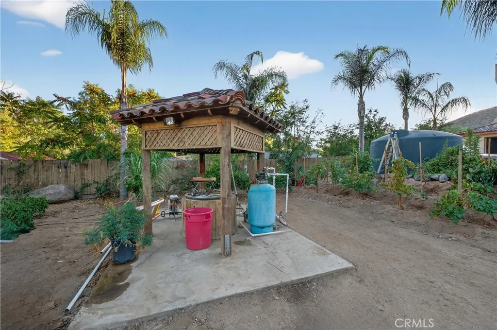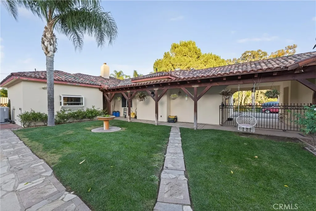 Welcome home to this beautiful ranch-style retreat nestled on 1.15 acres of private, gated land. A custom remote-control iron gate welcomes you into a property surrounded by palm trees, fruit trees, and plenty of space to park your RV, trailer, and all your desert toys. Step inside through elegant double doors and be greeted by high ceilings, recessed lighting, and dazzling chandeliers. The open floor plan seamlessly connects the spacious living areas, perfect for entertaining and family gatherings. The chefs kitchen features a large center island, granite countertops, and ample cabinet spaceideal for both casual meals and hosting. This expansive home offers 5 bedrooms and 5 bathrooms, including a grand master suite with a spa-inspired bathroom featuring a custom walk-in shower, separate soaking tub, and an oversized walk-in closet with custom-built shelving and cabinets. Enjoy your favorite films in the dedicated theatre room, or use the large bonus room as a 6th bedroom , an office, or gym -whatever fits your lifestyle. A beautiful arched breezeway offers a relaxing transition between indoor and outdoor living while allowing natural airflow throughout the home. Step outside and relax in your very own backyard paradise. Stroll through the rose garden, unwind under the gazebo overlooking a serene waterfall fountain, or host unforgettable gatherings on the covered patio with recessed lighting and chandeliers. The custom outdoor pizza oven and fire pit area provide the perfect setting for cozy nights under the stars. Adding to the homes impressive features, the property is eq