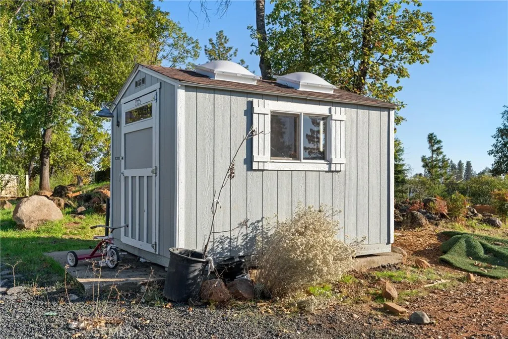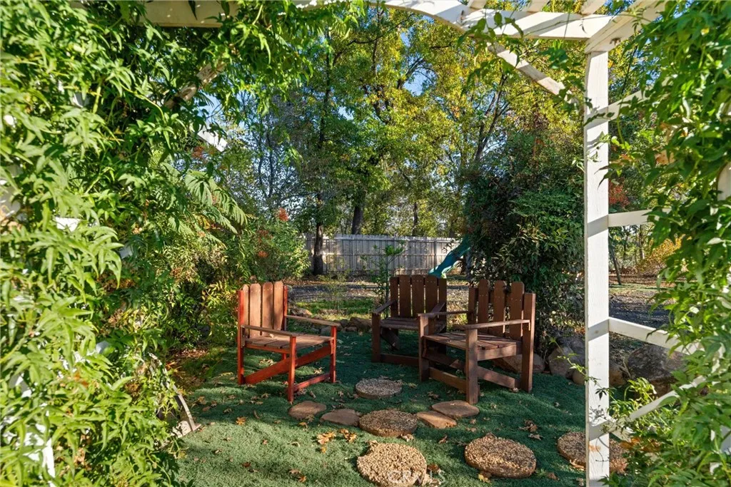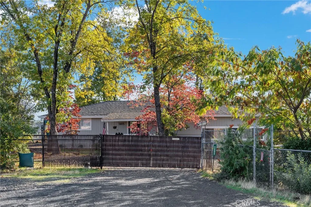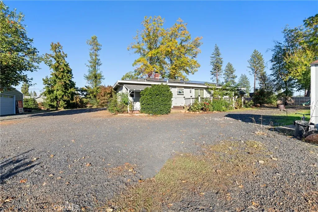 Welcome to your own slice of Paradise! This charming 1950s home blends vintage character with modern upgrades, offering a warm and inviting retreat on a private lane. Featuring 3 bedrooms, 2 bathrooms, and 1,612 square feet of living space, the home sits on a spacious 0.81-acre lot. Inside, you'll find original hardwood floors that have been beautifully refinished, complemented by new carpet, fresh paint, and a renovated kitchen. The home is equipped with 18 owned solar panels, a whole-house water filtration system, and a mini-split HVAC system installed in 2018. The roof was replaced in 2017, ensuring peace of mind for years to come. Step outside to enjoy breathtaking sunset views from the expansive deck, perfect for entertaining. A covered BBQ area makes year-round grilling a breeze. The property also includes a 900 sq ft insulated detached garage/shop with 50amp service and 220v, ideal for hobbyists or DIY enthusiasts. Two detached sheds provide ample storage, and the fully fenced yard with an electric gate offers privacy and security. Located close to Starbucks, restaurants, shopping, and just a short drive to Chico, this home offers both tranquility and convenience. Come experience the charm and character of this lovingly maintained Paradise gem.