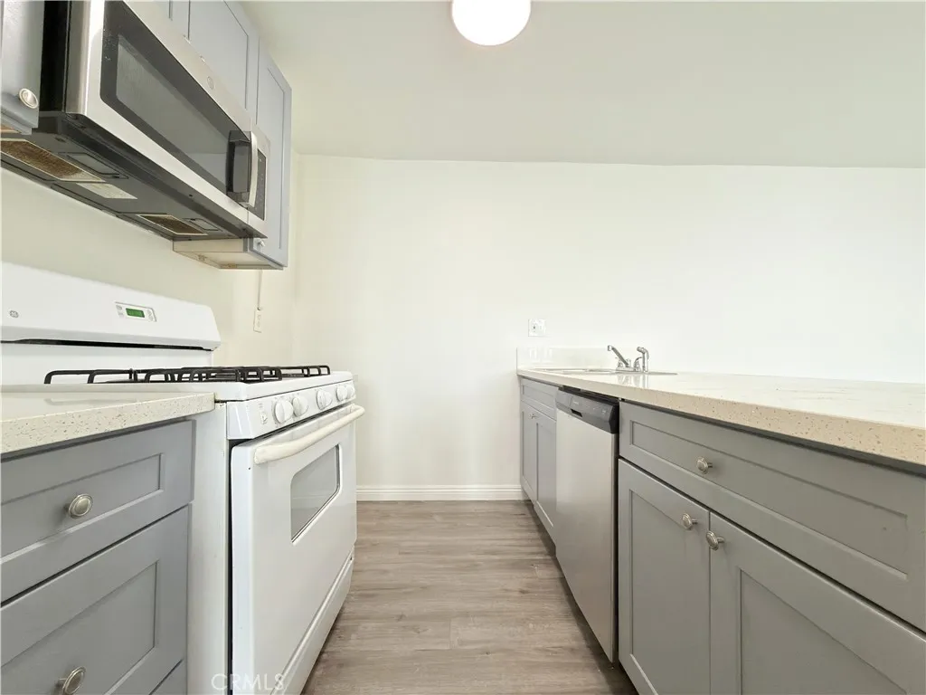 Welcome to this beautifully remodeled 2-bedroom, 2-bathroom condo located at 8601 International Avenue, Unit 179, in Canoga Park. Offering 883 square feet of comfortable living space, this first-level unit combines modern upgrades with convenience and style. Step inside to discover new flooring throughout, recessed lighting, upgraded bathrooms, and a modern kitchen with quartz countertops. The open-concept layout creates a bright and inviting atmosphere, perfect for relaxing or entertaining guests. This home includes a reserved HOA parking space for your convenience. Enjoy the benefits of living in a secure, gated community featuring amenities such as a pool, spa, and on-site laundry facilities. Located just minutes from Warner Center, Westfield Topanga Mall, and major freeways including the 27, 118, and 101, this condo offers the perfect combination of comfort, accessibility, and modern living.