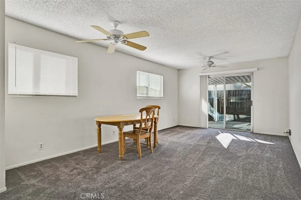 Welcome to Rancho Del Sol, a well-maintained 55+ community offering comfort and convenience. This beautifully updated 2-bedroom, 1-bath home features brand-new carpet and vinyl flooring, fresh finishes, and ceiling fans in every room. The open layout makes the home feel bright and inviting, while the single-level design provides easy accessibility. The kitchen and living areas flow seamlessly to the private backyard, which is fully fenced with a wood perimeter and finished in low-maintenance concrete, perfect for relaxing or entertaining under the covered patio. A detached one-car garage adds convenience and extra storage. Rancho Del Sol residents enjoy a peaceful setting close to local shopping, dining, and easy freeway access, offering both comfort and connection. Move-in ready and freshly remodeled, this home combines simplicity and privacy in one of the areas most desirable 55+ communities.