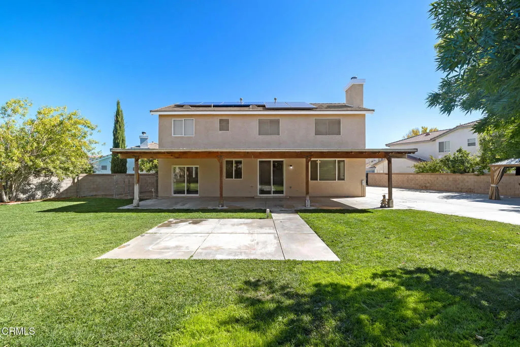 Beautiful 6-bed, 3-bath traditional-style home on a quiet West Lancaster cul-de-sac! Built in 2003 and exceptionally maintained, this 2,818 sq ft residence sits on a large 11,000+ sq ft lot and offers a perfect balance of comfort and function. Features include freshly painted interiors, a mix of laminate and professionally cleaned carpet flooring, and a welcoming layout. The open kitchen showcases granite countertops, a walk-in pantry, and connects to the family room with a cozy fireplace--ideal for gatherings. A formal living and dining area provide extra entertaining space. Downstairs includes one bedroom next to a full bathroom and an indoor laundry room for added convenience.Upstairs, the spacious primary suite offers dual sinks, a soaking tub, separate shower, and walk-in closet. Four additional bedrooms and a large loft complete the upper level, providing flexibility for a home office, gym, or media space.The backyard is a true highlight--professionally improved with new concrete, added grass, and its own irrigation sprinkler system. Enjoy a full-length covered patio and a beautiful permanent gazebo that stays with the sale, perfect for outdoor dining, entertaining, or relaxing in the evenings. The exterior fascia has been freshly painted, and the property offers gated RV parking and a 3-car garage. The expansive lot provides room for a pool, garden, or future ADU (buyer to verify).Leased solar helps reduce energy costs. No HOA. Conveniently located near schools, shopping, and the 14 Freeway. Zoned for Endeavour Middle and Lancaster High.This move-in ready West Lancas