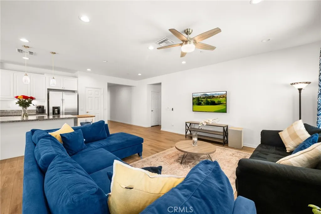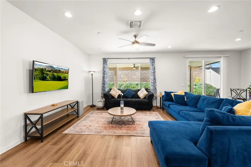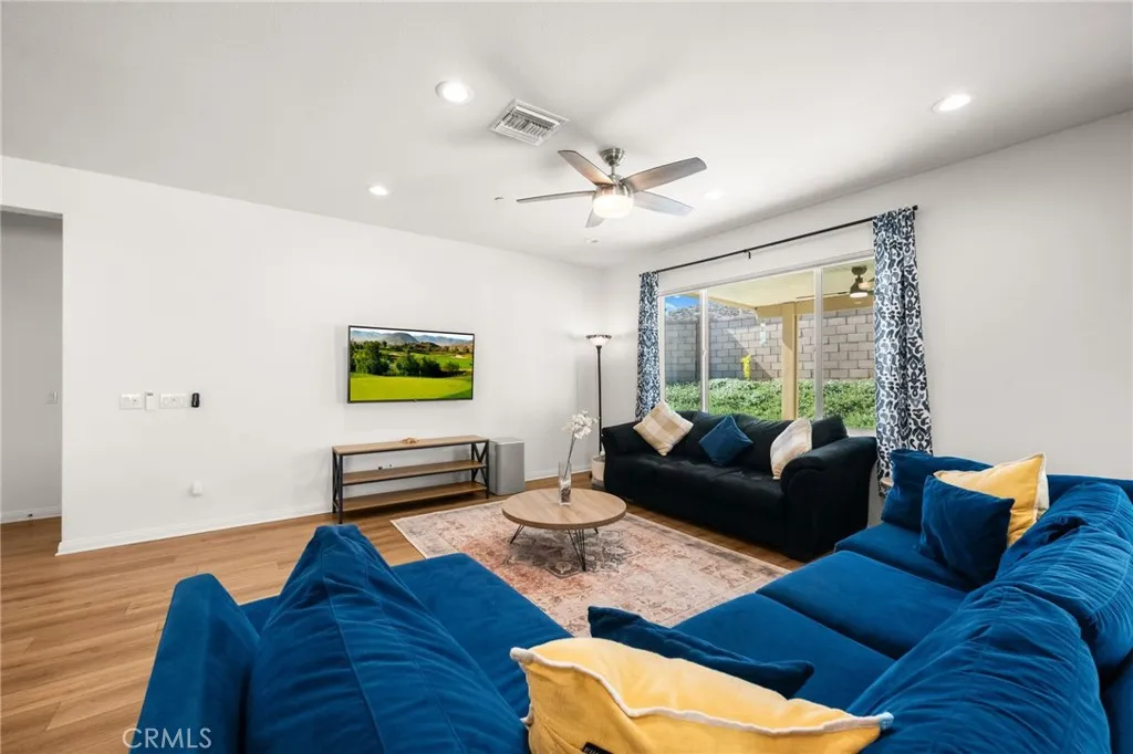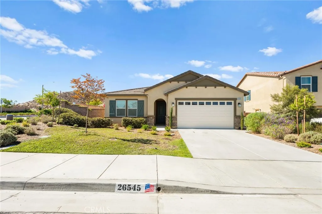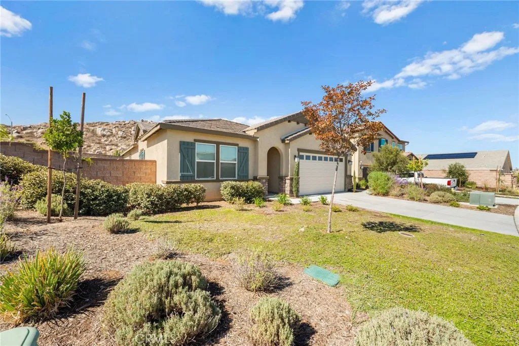Better than new and packed with upgrades! This single level, 3-bedroom home plus office sits on a prime corner lot near neighborhood parks. Youll love the open-concept kitchen with granite counters, a big island, Energy Star appliances, soft-close cabinets with pullouts, and a 4-burner gas range. The home features 9-ft ceilings, recessed lighting, LVP flooring, ceiling fans, and custom motorized window shades. The primary suite includes double sinks, a soaking tub, and more soft-close cabinetry. Additionally, the living room and primary bedroom are pre-wired for flat-panel TVs. Outside, enjoy a covered patio with ceiling fans, fruit trees, vinyl fencing, and drought-tolerant landscaping for easy maintenance. Move right in and start enjoying this upgraded, better-than-new home!