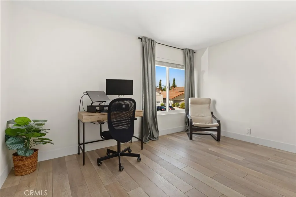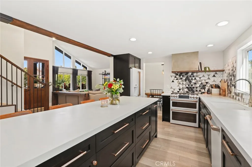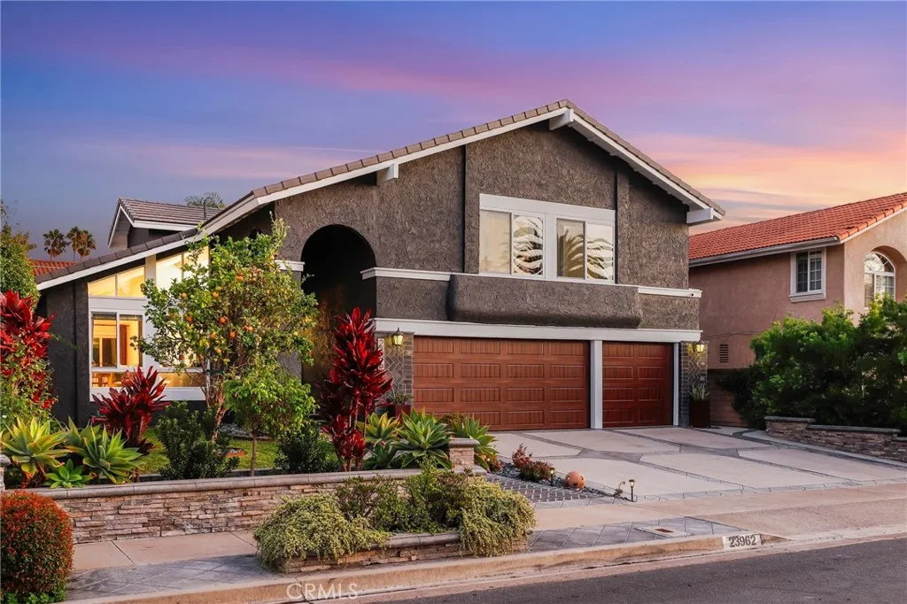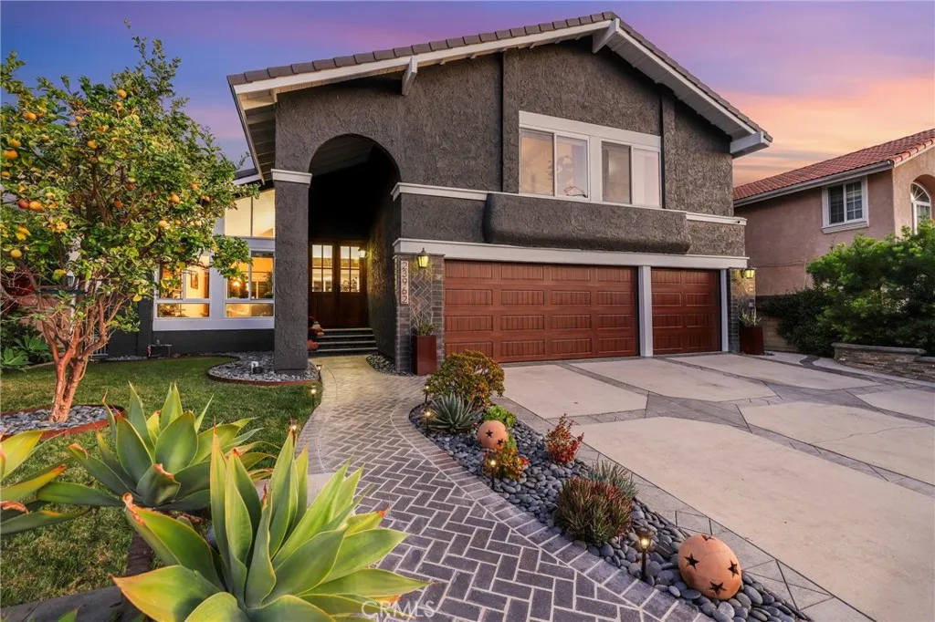 Welcome to 23962 Warsaw, a stunning fully renovated 4 bedroom, 2.5 -bath split-level pool home with 2,415 square feet of living space, ideally situated on a quiet cul-de-sac in the highly sought-after S & S Eldorado community of Mission Viejo. This home has been completely reimagined from top to bottom and is truly turnkey, offering the perfect blend of style, comfort, and modern functionality. The open floor plan features soaring vaulted ceilings and a bright, spacious design that flows effortlessly between the living, dining, and family areas. The beautifully remodeled kitchen opens to the family room and showcases an exposed glulam beam, lava-finish quartz countertops, solid wood soft-close cabinetry, an impressive eight-and-a-half-foot island, and GE Caf dual-fuel appliances that combine gas and electric precision. Large newer windows fill the home with natural light, while fresh designer paint, new AquaGuard waterproof laminate flooring, and six-inch baseboards create a clean, contemporary feel throughout. Upstairs, the primary suite serves as a true retreat with a fully renovated bathroom featuring a walk-in shower, soaking tub, private water closet, and custom walk-in closet. Three additional bedrooms provide ample flexibility for family, guests, or a home office. The backyard is designed for entertaining, complete with a sparkling pool, new heater, pump, and filter, and lush landscaping that includes a pink-lemonade tree in front and two lime trees in the back. Every major system has been thoughtfully upgraded, including a new concrete roof, new furnace, new water h