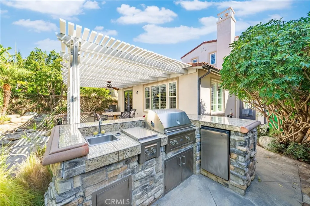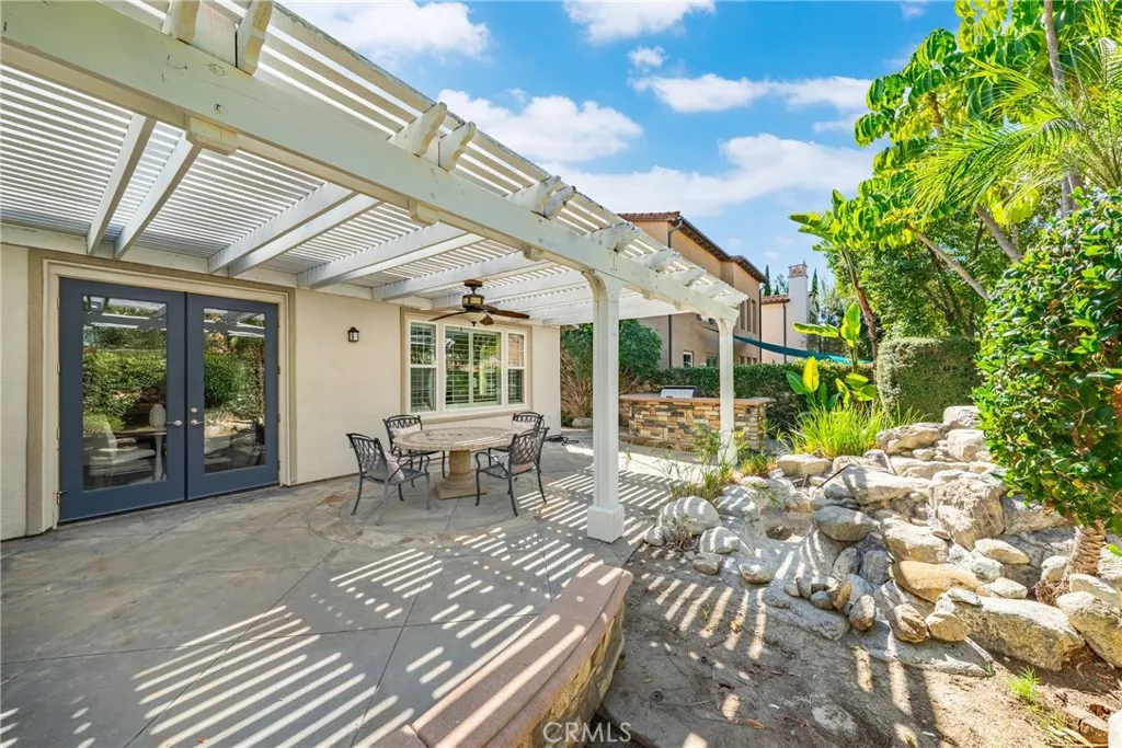 Rarely available, this exquisite 4-bedroom, 3.5-bath and 1-office residence in Irvines prestigious Woodbury community defines luxury living at its finest. Thoughtfully designed for elegance and comfort, the home welcomes you with soaring cathedral ceilings, custom crown molding, and sun-filled living spaces that exude sophistication. The main-level primary suite offers a tranquil retreat complete with a spa-inspired bathroom featuring a jetted soaking tub and a spacious walk-in closet, while the gourmet kitchen delights with a granite island, stainless steel appliances, seamlessly flowing into the expansive family room for effortless entertaining. Upstairs, an additional ensuite bedroom provides privacy and versatility, perfect for guests or multigenerational living. Step outside to your private entertainers backyard, a professionally landscaped oasis showcasing a built-in outdoor kitchen and serene waterfall feature. Ideally located within walking distance to Woodbury Elementary, Jeffrey Trail, and the vibrant Woodbury Town Center, and zoned for the award-winning Irvine Unified School District, this exceptional home also offers access to seven resort-style pools, tennis courts, and multiple parks. Combining refined design, premier amenities, and an unbeatable location, this residence embodies the ultimate Irvine lifestyle.