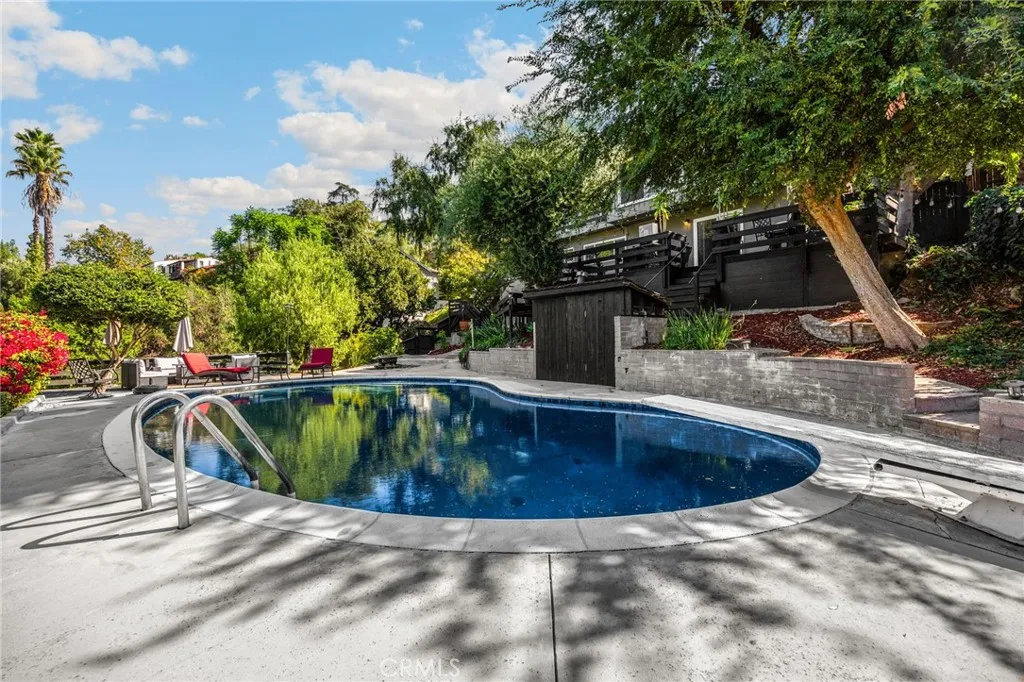 Spectacular LOCATION in the prestigious and exclusive College Hills neighborhood. This is a locals-only-known community of elegant vintage and historical homes that are adjacent to the "Western Ivy League" campus of Whittier College. This is a friendly neighborhood where most homes are held by families for decades and rarely come up for sale. The views from every window offer vistas over the quiet, verdant neighborhood and of glorious tall pine trees. This home has gorgeous hardwood flooring and beautiful natural light through large picture windows. The popular open concept floorplan allows family and friends to gather in the living room, den, and dining room with ease and then pack into the kitchen for intimate conversation at the kitchen counter chairs. The kitchen and bathrooms have been renovated and the house enjoys many updates all while keeping the integrity of the architectural style. All of the bedrooms are downstairs where peace and quiet are revered: the Primary suite (with MASSIVE walk-in closet) is at one end of the hall, two large bedrooms and hall bathroom are in the middle of the hall and the Jr. Suite (perfect for teen/college/in-laws) is at the other end of the hall. The rear decks, garden and pool area are the ultimate and most exquisite spaces for entertainment. You will love the many seating areas- both spacious and intimate- for parties that can accommodate large or small gatherings. The luxurious black bottom pool is heated which allows year-round swimming along with numerous patio areas for sunbathing. Dog lovers will delight in having an enclosed ar