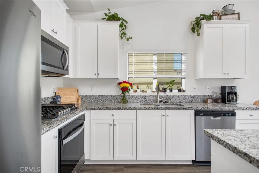 This is an exceptional opportunity to own a nearly new, energy-efficient smart home in The Fairways, one of Beaumonts most desirable resort-style communities. Built in 2024, this upgraded single-story home offers three bedrooms, two bathrooms, and a thoughtfully designed open floor plan. The kitchen is the centerpiece of the home and features Whirlpool appliances, a large center island with granite countertops, white shaker cabinets, a stainless steel sink, and durable vinyl plank flooring that flows throughout the main living areas. The primary suite includes dual vanities, a spacious walk-in shower, and a large walk-in closet. Modern conveniences include fully paid solar, a 50-gallon electric water heater, and a two-car garage. The home is equipped with smart technology, including a keyless front door lock, smart thermostat, video doorbell, and garage door control, all accessible through a central in-home smart hub or mobile device. The backyard is a blank canvas and ready for your personal touch, whether it's landscaping, gardening, or building your ideal outdoor living space. The Fairways community offers two swimming pools, multiple parks, a splashpad, walking trails, and access to the Morongo Golf Club at Tukwet Canyon. The HOA fee includes high-speed internet and access to community amenities. The home is conveniently located near shopping, restaurants, top-rated schools, and offers easy access to the 10 and 60 freeways. It is also a short drive to Palm Springs, Big Bear, and Idyllwild. This is a rare chance to purchase a move-in ready, nearly new home in a thriving