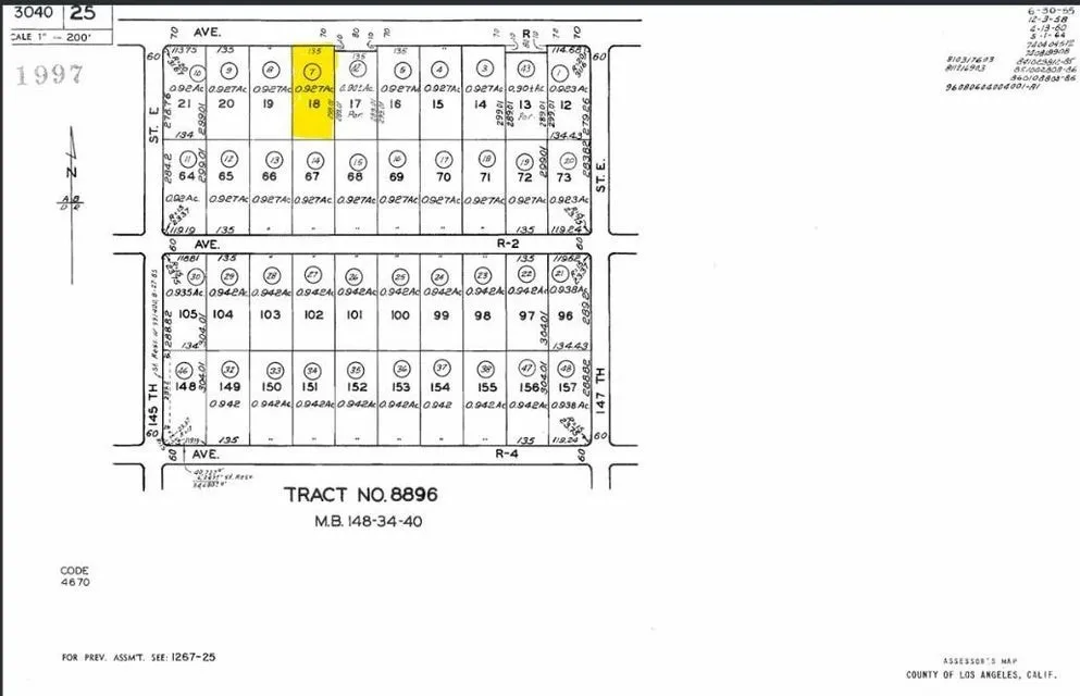 40,364 SQ FT residential lot in the Sun Village area of Littlerock. The lot has 135 feet of frontage on Ave R with power in the street. Zoned A25 for agriculture, animals, and a home.