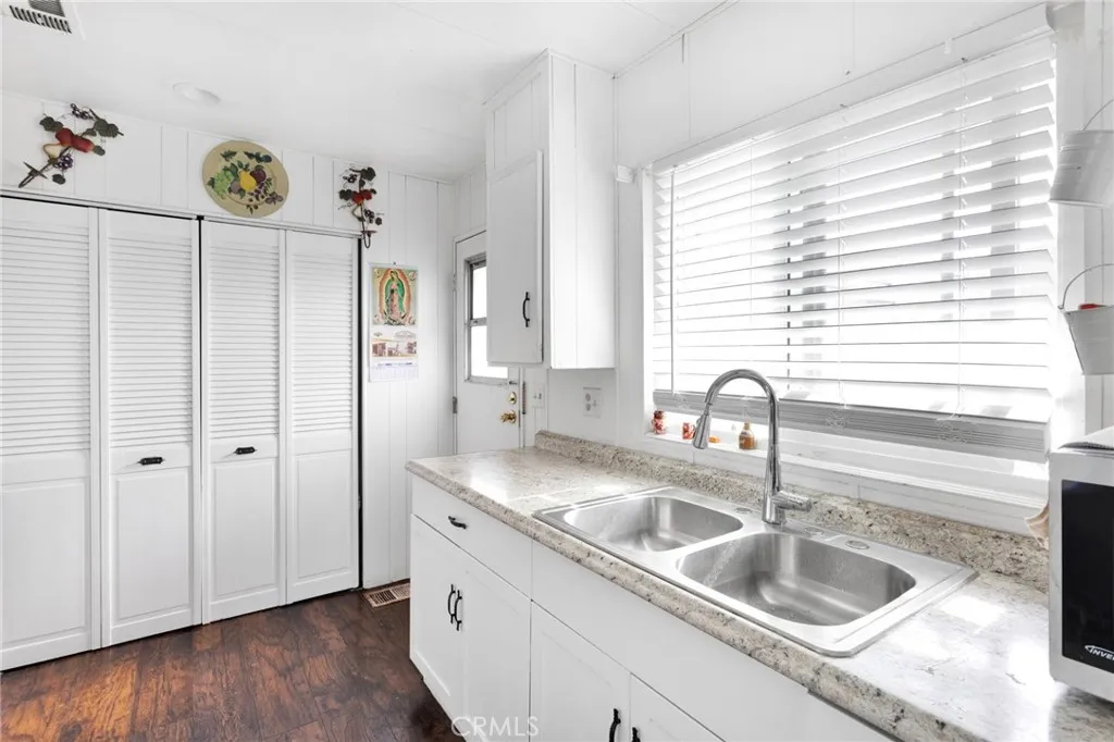 Welcome to this charming and well-maintained 800 sq ft mobile home located in the desirable Rancho Brea Park. This inviting 2-bedroom, 2-bathroom home offers a functional layout. Inside, youll find a kitchen that opens to the living room. The home also features indoor laundry and wood flooring throughout, adding both convenience and style. This home has seen several recent upgrades, giving you peace of mind for years to come. The water heater, air conditioning unit, and windows were all replaced approximately two years ago, and the roof was replaced three years ago, making this home truly move-in ready. Outside, enjoy a nice size yard featuring low-maintenance turf and tile flooring, ideal for outdoor gatherings or simply relaxing. The property offers ample parking for up to 34 vehicles. Rancho Brea Park provides fantastic community amenities, including a clubhouse, inground swimming pool, and jacuzzi. This is a wonderful opportunity to own a beautifully upgraded home in a well-maintained parkdont miss it!