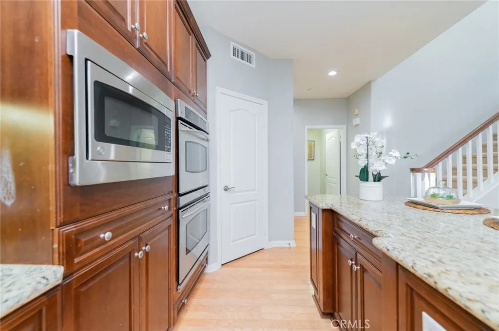 Situated in the gated Northwood Estates community, this two-story home offers a well-designed layout with bedroom suites on both levels, combining openness with privacy. Upon entry, the home opens to a welcoming living room with a fireplace, serving as the central gathering space on the main level. To the right of the living room is a well-positioned first-floor primary suite, providing exceptional convenience and privacy. This suite features dual sinks, a dedicated vanity area, a soaking tub, a walk-in shower, and a spacious walk-in closetideal for multi-generational living or long-term flexibility. The living room flows seamlessly into a dramatic two-story dining area filled with natural light, creating an open visual connection to the second floor. Adjacent to the dining area is the well-maintained kitchen, appointed with granite countertops, walnut-toned cabinetry, and a walk-in pantry, offering practical storage with a clean, timeless aesthetic for everyday use and entertaining. A hallway off the kitchen leads to the attached garage, a full bathroom, and an additional first-floor bedroom, arranged to provide a thoughtful and private layout within the home. Upstairs, the staircase off the dining area leads to a spacious loft overlooking the dining space below. This versatile area functions well as a family lounge, home office, or secondary living space while maintaining an open and connected feel. Located on opposite sides of the loft are two bedroom suites, offering a well-balanced floor plan that supports privacy. The second-floor primary suite is generously sized and