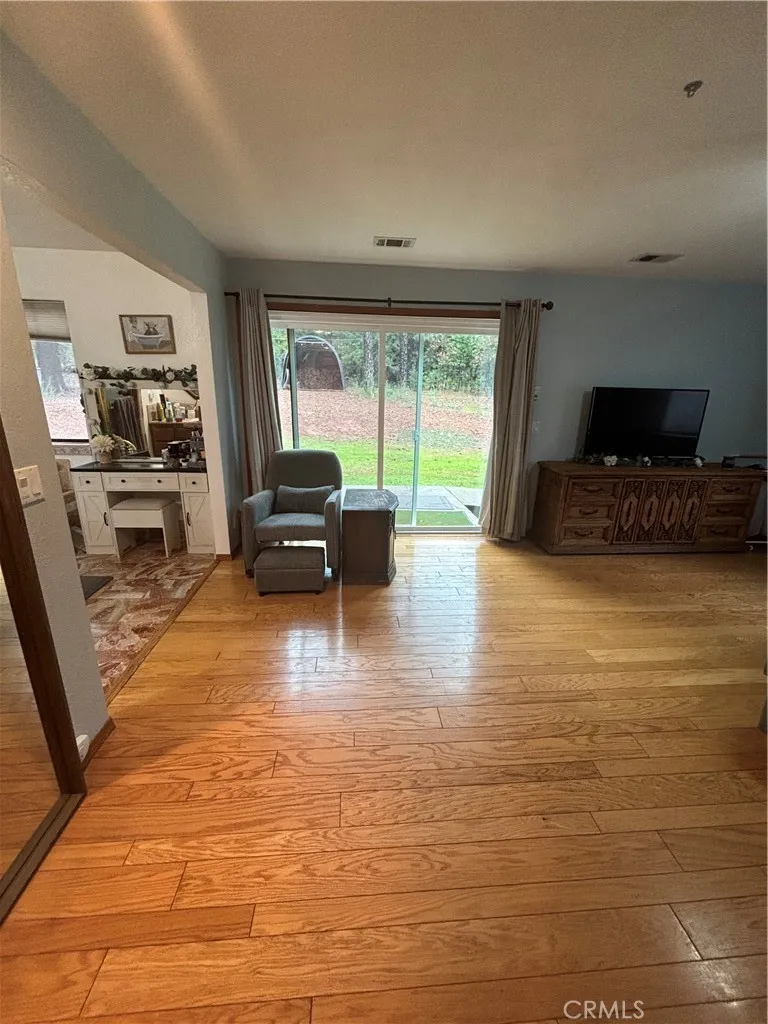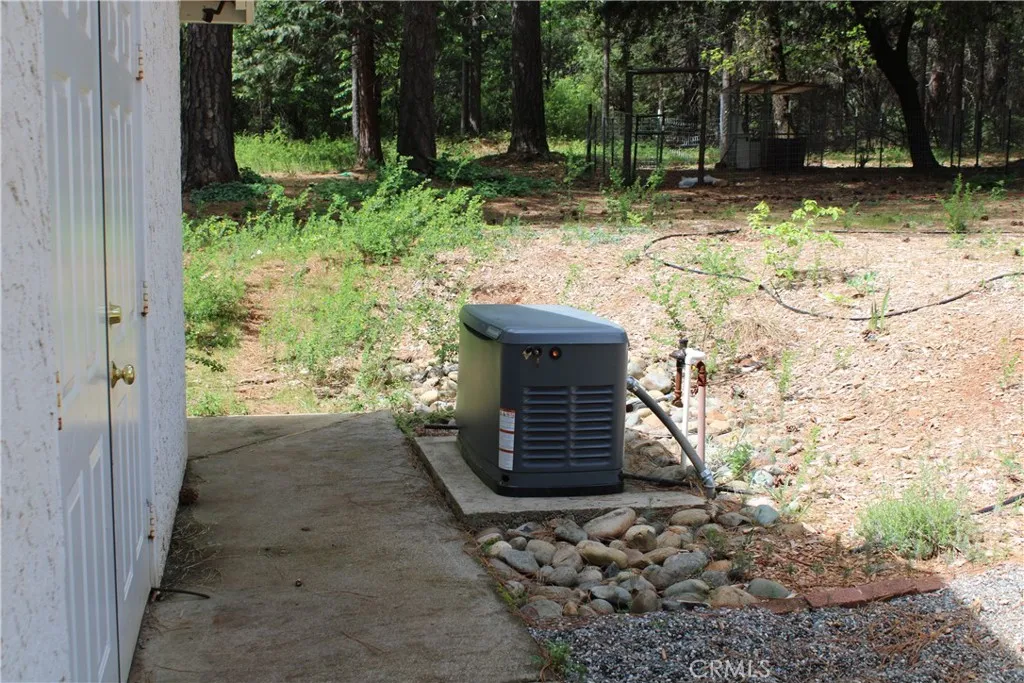 Fabulous Homestead on 4.80 Level Acres! Spacious contemporary home with storied windows to take in the forested surroundings. This home treats you to three generous sized bedrooms including a luxurious primary suite accented with marble tiled walk-in shower and a glorious jetted tub. Beautiful original hardwood flooring throughout the home, with many custom details, yet opportunity to update and add your own personal touches. Enjoy the centrally located wood burning fireplace that keeps this home nice and cozy. Recent upgrades include newer roof, new sliding doors and some windows. Also new mini-split heat and air, counter tops and updated lighting throughout the home. Property is perimeter fenced, set up for horses and is bordered by PGE Centerville Canal with deeded water rights. Property includes detached shop/garage with air compressor and plumbed lines, plus a Generac generator for any power outages.