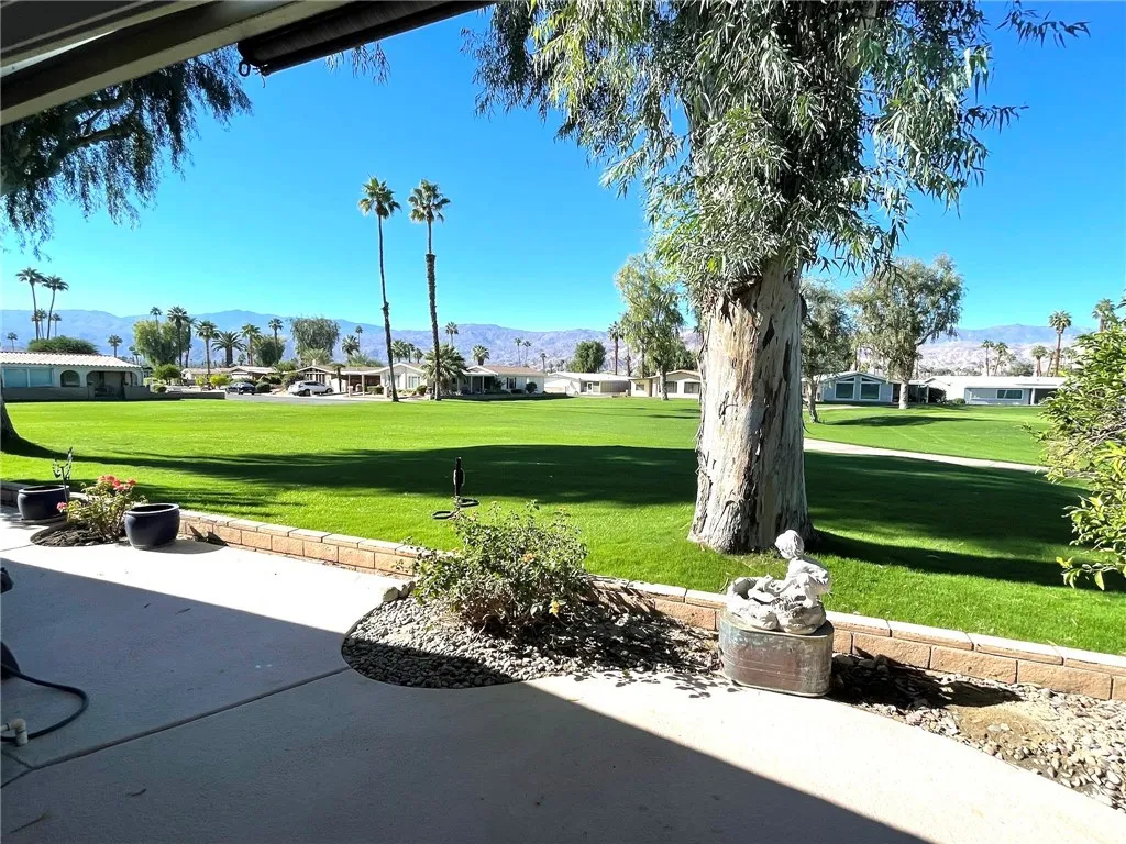 Huge Price Reduction! Seller Motivated..Dont miss this one on the GOLF COURSE WITH INCREDIBLE VIEW! Palm Desert, Portola Country Club a Private Gated 55+ Community, 18 Hole Golf Course Free to owners! 1,940SF Home, Two Bedroom/Two Bath, Open Floorplan. Look no further, Did I say..Incredible Golf Course Views on the Green w/Mountain Views also include Water & Fountains, mature Fruit Trees, Lush manicured greens! Home has remodel/updates throughout, Slider Door Entry opens to expansive Living Room w/Vaulted ceilings and Dining. A beautifully appointed Kitchen w/Quartz, Large center island. Large Inside Laundry Room, includes Washer/Dryer and built-in Storage and Desk. Primary Bedroom w/walk-in Closet and new Remodeled Private Bath; Walk-in Shower, Dual Sinks. Bedroom 2 can be used as Guest Room or Office. 2nd Bath is also fully remodeled. Large covered Carport with large Storage at rear. Newer A/C and Electrical supply. Community offers in addition to Golf and Putting Green included with HOA fees! 3 heated Pools w/Jacuzzis, Tennis Court, Pickle Ball Courts, Bocci Ball Courts, Dog Park, RV Parking available, Newly Updated Club House; incl Pub, Billard Room, Gym, Library, Large Dining faculty. Important to note YOU OWN YOUR LAND! Close to El Paseo, Restaurants, Malls, Eisenhauer Medical Center and future Disney Development.