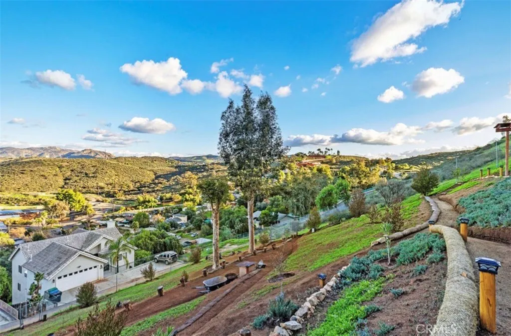 Welcome to Castle Court Drive, a truly one-of-a-kind mountain-top residence offering panoramic views overlooking Lakeside and the surrounding countryside. Perched at elevation, this exceptional property captures sweeping vistas from nearly every room, with abundant windows designed to frame the scenery from all angles. The home has been thoughtfully updated and meticulously maintained by the original owner, featuring new countertops, updated appliances, a new HVAC system, solar power system, brand-new roof, and new windows throughout. The attached and detached structures are equally impressive, including a permitted, detached tri-level 3-car garage with workshop space below and attic storage above, offering approximately 6-foot ceilings in both the shop and attic areas. The garage itself features six picture-frame windows showcasing remarkable views. The main level offers an open floor plan with a wood-burning fireplace anchoring the living room and a well-appointed kitchen with stainless steel appliances. A striking picture-frame window highlights the stairway leading to the upper level, where a guest bedroom and the primary suite are located. The primary suite features windows on multiple sides and direct access to a wraparound deck ideal for enjoying sunrise and sunset views. The lower level includes a den, an additional guest bedroom, and access to another wraparound porch, creating flexible living and entertaining spaces throughout the home. Outdoors, the property is beautifully landscaped and fully chain-link fenced, featuring multiple fire pits and extensive lighting