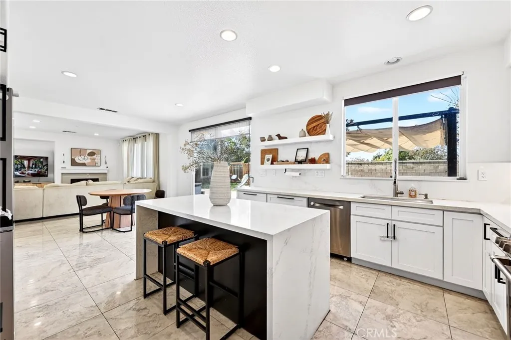 Welcome to 43901 Running Brook, a modern, upgraded home in highly desirable South Temecula, ideally located on a quiet cul-de-sac with no rear neighbors. This move-in ready home features a bright, open floor plan designed for both everyday living and entertaining, along with a spacious 3-car garage offering ample parking and storage. The interior showcases upgraded porcelain tile flooring throughout the main living areas, creating a clean, modern look with durability and style. The kitchen is a true centerpiece, featuring white shaker cabinetry, quartz countertops, a large waterfall island, stainless steel appliances, open shelving, and recessed lighting, all opening seamlessly to the backyard for indoor-outdoor living. The dining area is enhanced with a tray ceiling, modern lighting, and custom wall sconces, while a built-in bar with beverage storage adds both function and a great space for entertaining. Upstairs, the oversized loft offers incredible flexibility and can easily function as a media room, game room, home office, or additional living space. The primary suite is a relaxing retreat with a tray ceiling, abundant natural light, and a spacious layout designed for comfort. The backyard is well-maintained and private with no rear neighbors, creating a peaceful setting for outdoor enjoyment. Located within walking distance to Vail Ranch Middle School and just minutes from Great Oak High School, parks, shopping, dining, Temecula wineries, and Pechanga Resort Casino, this home offers both convenience and lifestyle. This is a rare opportunity to own a fully upgraded home