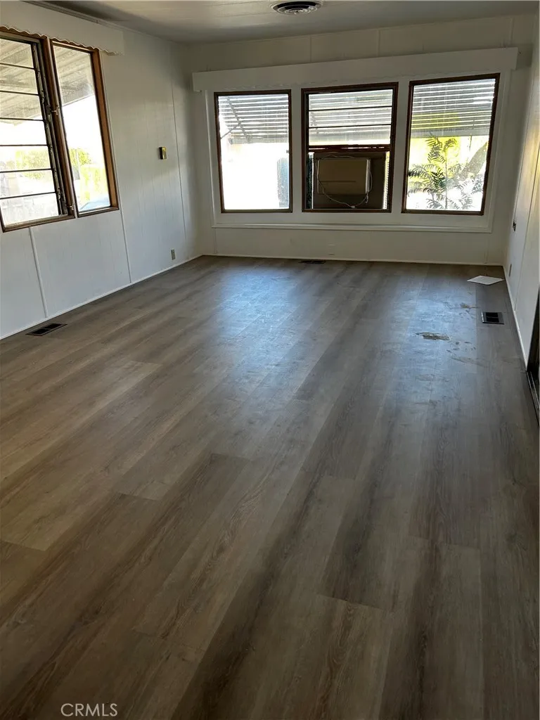 This home is located in a very clean, well-maintained park. Age specific for seniors (55+) park. This home has an expando bedroom. The two good-sized bedrooms have built-in closets and shelves for storage and have been newly painted. It has new vinyl flooring throughout the home. Open floor plan with living room and kitchen. Lots of natural light from the many windows in the living room. There is a built-in stovetop and oven, refrigerator stays. Washer and dryer located in the screened-in porch area also included. Sliding doors for entering the living room and one of the bedrooms are off the porch. The bathtub has been reglazed and there is a corner shower in the spacious bathroom. The water heater is new. Unknown age of the roof; however, there are no leaks after all the rain we have experienced. It has central air & heating plus an evaporative cooler in the living room, keep or remove as you like. For the handyman in you, there is a workshop at the end of the carport where you can store your tools and/or make things. There is even a backyard for your entertaining or green thumb needs. The carport has parking for two vehicles. The park has storage for your RV and other toys. Affordable space rent. Sold AS-IS.