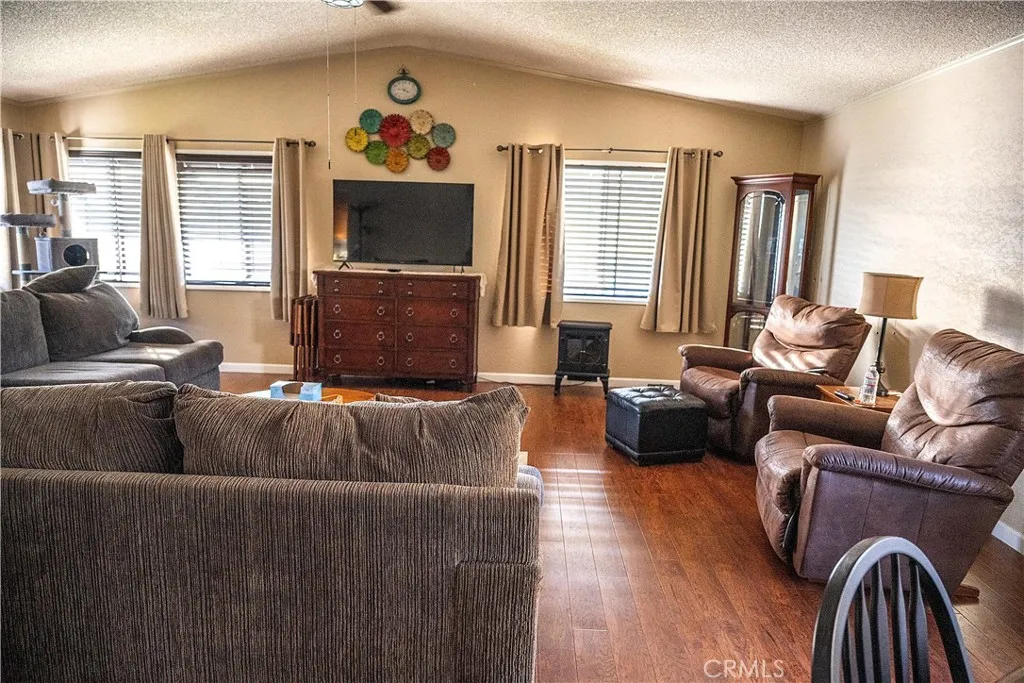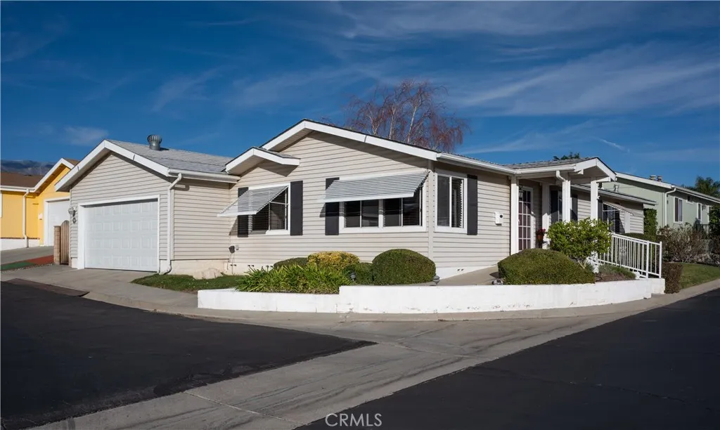 Welcome home to this well-maintained manufactured 55+ community home in Banning, where comfort, upgrades, and outdoor living come together nicely. The home features a large living room with plenty of windows that bring in natural light and allow for great airflow. Hardwood floors run through the living room, dining area, and kitchen, and a ceiling fan adds comfort. A sliding door in the dining room opens to the backyard patio. The kitchen is a good size with lots of cabinet storage, a stove that is about one year old, and a new goose neck faucet. A separate laundry room includes a washer and dryer that are approximately two to three years old. Major improvements include a brand-new roof completed January 10, 2026, a water heater that is two years old, and an air conditioner estimated at six years old. The bedrooms are nicely sized. The primary bedroom has an ensuite bathroom with a walk-in shower, large window, and linen cabinet, with space to add a tub if desired. The second bathroom has been renovated and includes a tub with shower. Both toilets have been recently replaced. The front and backyard are landscaped and include a sprinkler system, along with a key lime tree in the front yard. The backyard patio is perfect for enjoying your morning coffee. The garage offers cabinets on both sides and a workbench, providing excellent storage. Additional features include a reverse osmosis water system that is about one year old for clean drinking water, showers, and laundry. The park amenities include a large swimming pool with restrooms, a covered picnic and BBQ area, and pickle