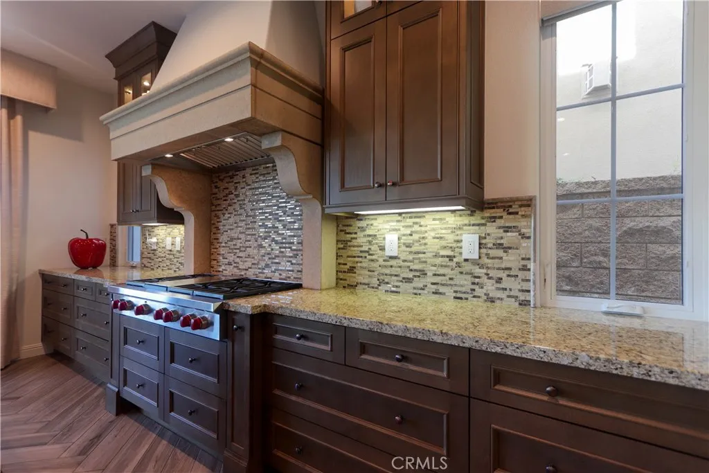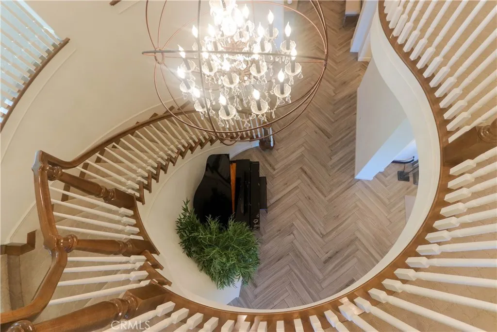 Discover an extraordinary opportunity to own a rare 11,000 sqft estate nestled within the exclusive, guard-gated community of Hidden Canyon, renowned for its stunning city and mountain vistas. This luxurious property boasts a lush backyard featuring a full suite of amenities, including a BBQ island, swimming pool including four 25-yard lap lanes, hot tub, water fountain, paved patio, and a shaded California Room with a fireplace, perfect for entertaining. The back of the home offers breathtaking panoramic views of the Irvine Spectrum, OC Great Park, and Trabuco Canyon mountains from the elevated 180-degree vantage point. Located at the end of a quiet street, 105 Iron Gate is a beautiful Capri Collection Plan 5 residence that welcomes you with an elegant tiled entry, a dramatic spiral staircase, and a grand foyer with soaring ceilings and a dazzling chandelier. The spacious family room, illuminated by retractable sliding doors, features a cozy fireplace and designer lighting with remote-controlled drapery. The chefs kitchen showcases double islands with granite counters, premium appliances including a 6-burner WOLF range, double ovens, microwave, and a double-door built-in refrigerator, plus a discreet prep kitchen and walk-in pantry. A private in-law suite with its own bath and entrance offers additional comfort on the main level. Upstairs, you'll find a versatile loft, three en-suite guest bedrooms, and a luxurious primary suite with a private balcony, sweeping views, a large walk-in closet, dual vanities, a spa-inspired tub, and a spacious walk-in shower. Dual laundry roo