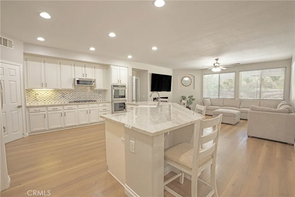 Welcome to this beautiful Tesoro del Valle home. Open concept floorplan, with lot of natural light, and a spacious kitchen with a lot of storage space will satisfy all your entertaining dreams. KitchenAid appliances, soft close drawers/cabinets, a walk-in pantry and adjacent updated butler's pantry are just some of the features youll enjoy. First floor offers recess lighting with energy efficient LED lightbulbs, a flex room off the kitchen that can be used as a large office or another bedroom, and a den/bedroom and half bath, and a small gym adjacent to the garage . The upstairs bedrooms all feature large closets with built-ins, and there is a loft perfect for a play room or even another bedroom. Accessible from the dining room, enter a large backyard featuring a wonderful built in patio-cover with fans and electric heaters. SOLAR PANELS ARE FULLY PAID OFF and are able to generate electricity for the entire house! Additionally, a Tesla car charger has been installed in the garage, as well as a tankless water heater. The property is equipped with a smart sprinkler system and dual Nest thermostats allowing for optimal temperature control and energy efficiency throughout the home, as well as two laundry units upstairs and downstairs. The garage provides plenty of space for vehicles and additional storage needs, including an accessible attic. Tesoro del Valle Master HOA delivers beautiful amenities including 2 pools, a clubhouse, tennis courts, a playground & a beautiful duck pond, a gym and volleyball court. This home is also walking distance to a top rated Elementary & Junior