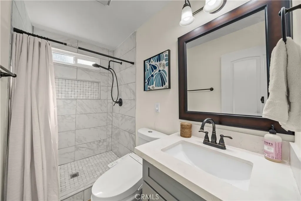 Cozy and beautifully updated, this 2-bedroom, 1-bath home features a fully fenced front courtyard with a covered patio accented by charming pub lightingperfect for relaxing or entertaining. Upon entry, the cozy family room welcomes you with a warm and inviting atmosphere, ideal for everyday living. The remodeled interior showcases new flooring throughout (installed September 2025) and a spacious kitchen featuring gorgeous quartz countertops, a custom backsplash, upgraded cabinetry, and modern stainless steel appliances. The bathroom was recently remodeled in September 2025 and offers a stylish step-in shower with stunning finishes. Additional highlights include elegant plantation shutters, a convenient indoor laundry area, and three storage sheds at the rear of the home providing ample extra storage. Ideal for first-time buyers, downsizers, or anyone seeking a move-in-ready home filled with charm and thoughtful upgrades. Conveniently located just 1.5 miles from the beach, public transit is close by, a few miles from Cal State University Long Beach. Great restaurants, bars, and nightlife all within walking/biking distance.