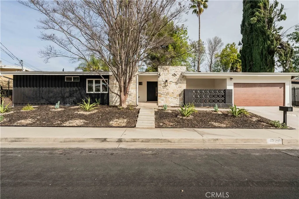 An iconic Charles Dubois mid-century residence, thoughtfully reimagined to blend timeless architectural integrity with modern volume, warmth, and livability. This thoroughly well thought out design, with all bedrooms ensuite plus an additional powder room, honors the original spirit of Dubois design while elevating it for contemporary living. The layout has been redesigned to create a seamless open-concept floor plan, connecting the kitchen, living room, and dining areas into one expansive, light-filled space ideal for both everyday living and entertaining. The walls of glass off the entertaining spaces look out onto the spacious outdoor areas, which include a beautiful swimming pool and sunning terraces set against the backdrop of the mature landscape. Clean lines, balanced proportions, and an effortless indoor-outdoor flow reflect the hallmark elements that made Charles Dubois one of the most celebrated mid-century architects in California. The kitchen serves as the heart of the home, featuring custom cabinetry, premium countertops, combine sculptural design with everyday function. Each bedroom is a private en-suite retreat, offering flexibility and comfort for family, guests, or work-from-home living, while the addition of a well-placed powder room adds convenience for entertaining. A rare opportunity to own a true Charles Dubois architectural homeupdated for modern life while remaining deeply rooted in mid-century designperfectly positioned in one of Woodland Hills most desirable neighborhoods.