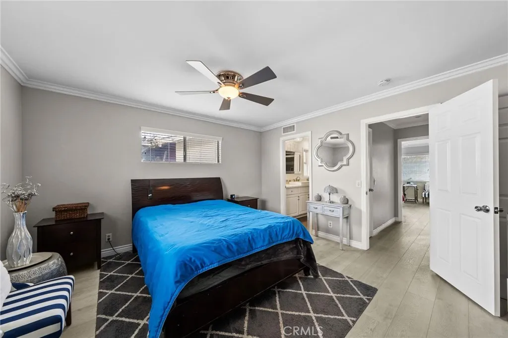 Welcome home to Panorama Village, an exclusive 55+ senior golf community where comfort, convenience, and an active lifestyle come together. This beautifully maintained home offers peaceful surroundings with easy access to the communitys many recreational amenities. Step inside to a spacious open floor plan highlighted by warm nuetral flooring that flows throughout the home. Natural light fills each space, enhanced by new windows with shutters and blinds, while ceiling fans in every room and a whole-house fan ensure year-round comfort. Energy efficiency is a major bonus with a leased solar system, buyer to assume. The kitchen is both stylish and functional, featuring granite countertops, stainless steel appliances, a double-oven gas range, and a newer over-the-range microwaveperfect for everyday cooking or entertaining. The primary bedroom offers a relaxing retreat with a barn door entry, walk-in closet, and an updated en-suite bathroom. The remodeled hall bath also features a barn door, soft-close vanity drawers, and a beautifully tiled shower with a soothing rain showerhead. As a resident of Panorama Village, youll enjoy an impressive lineup of amenities including a golf course, pool, spa, dog park, gym, clubhouse, recreation and meeting rooms, billiards, shuffleboard, and multiple sport courtsall designed to support an active and social lifestyle.