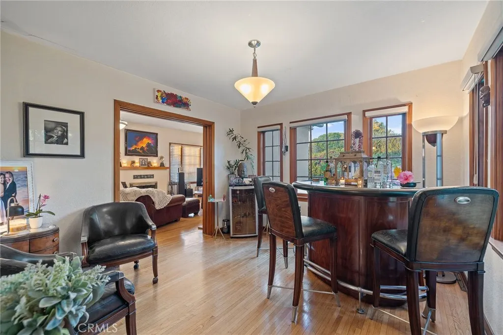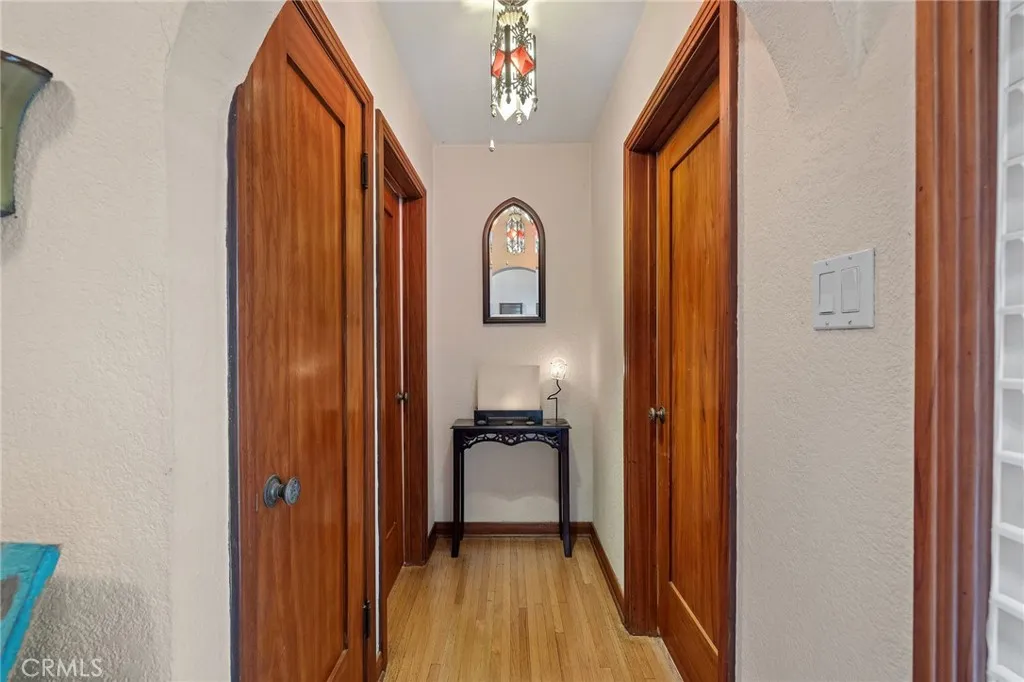 Escape to timeless elegance in this approximately 2,327 sq ft Art Deco-style two-story residence, perched on an expansive ~18,747 sq ft lot with a sparkling backyard oasis. Rich architectural details meet modern comforts and classic Spanish charm, creating a welcoming sanctuary for comfortable living and entertaining. Inside, the living room welcomes you with an arched doorway, beautiful hardwood pocket doors, high ceilings, a standout fireplace, and hardwood floors. An adjacent seating areathrough another set of wood pocket doorsprovides a perfect space for hosting guests before a formal dining room thats sized for large gatherings. On the main floor, youll find a generously sized bedroom and a 3/4 bathroom featuring original tile, an arched shower entrance, and a pedestal sink. A grand wood staircase leads to the upper level, where the primary bedroom offers two walk-in closets, built-in dressers and cabinets, and a tranquil pool view. A second bedroom upstairs shares a full bathroom with more original tile and a soaking tub. The private backyard feels like a resort: a gated Grecian-style pool with a spa, a large covered cabana with skylightsideal for al fresco dining and entertainingand lush landscaping with fruit trees, including a prominent avocado tree. Additional highlights feature a gated driveway, an attached two-car garage, and more than 42 bright windows that flood the home with light. A basement adds generous storage and a laundry area. Set on a peaceful, generously sized lot that complements the homes enduring, timeless appeal.